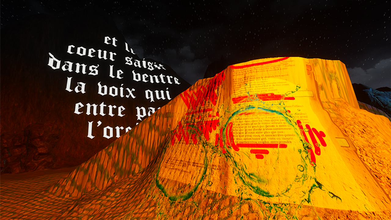 According to the material resources of the site, the artist invests the gallery Éc'arts as the setting for the filming of a film, made with a group of M2 students and the college students of Binquenais. In workshop, they experiment with improvisation protocols, performances, text/voice readings, then revisit the courtly novel Yvain, le chevalier au lion de Chrétien de Troyes (Yvain, the knight with a lion by Chrétien de Troyes) and in particular the passage where Yvain turns into a wild man.