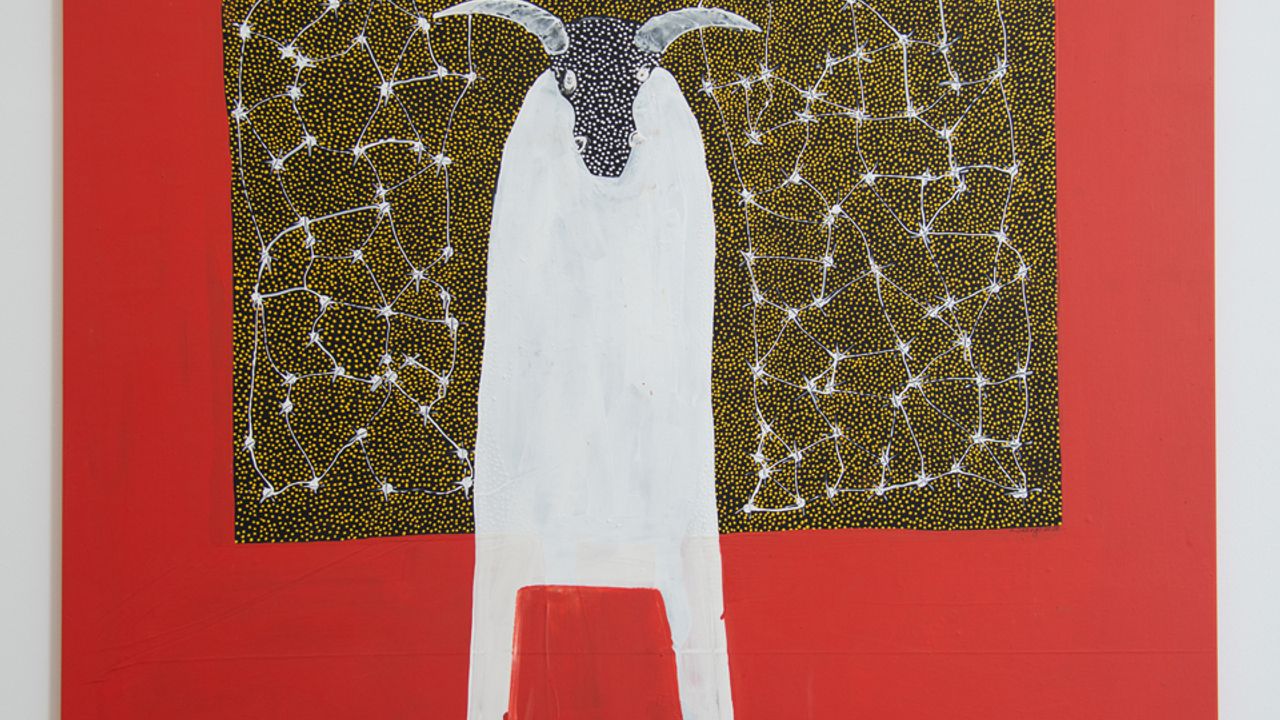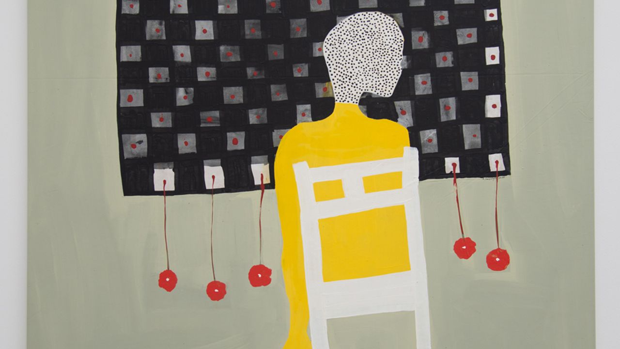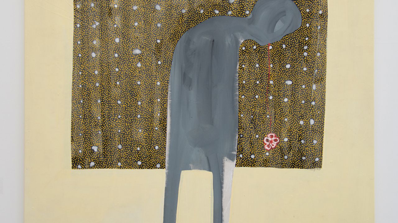 Stylistically direct and wide-ranging, Sanago's paintings are immediately recognisable: a figure - occasionally two - is set against a monochrome background, on which is overlaid a square or rectangle often bearing repetitive patterns. The dark, sometimes fractured bodies are complemented by highly symbolic items including flowers (the importance of harmony between people) and gloves (the need to stand up and resist).