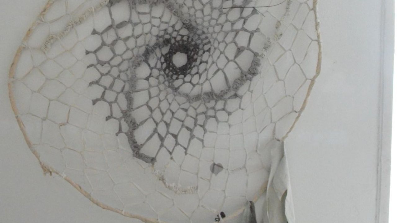 Rights reserved: Thomas Gaugain, Attrape-rêves des femmes de la prison de Rennes, 2022, diam. 180 cm env., teinture végétale sur toile de coton et lin,sucre, organza, brindille, soie, vue de l'exposition hors les murs Rennes Babylone, Hôtel Pasteur, Rennes, du 17 au 18 décembre 2022, production : La Criée centre d'art contemporain