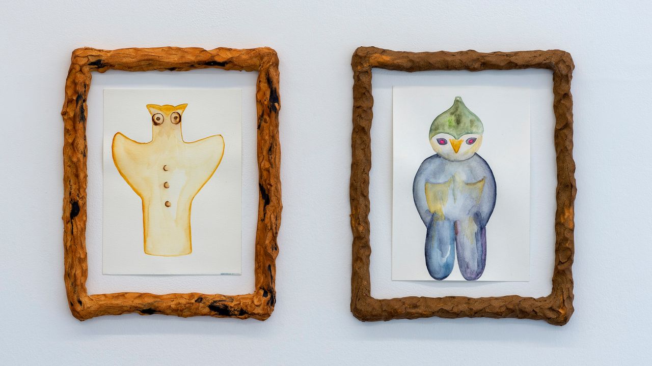 Watercolours, some of which served as preparatory drawings for the ceramics, complete this allegretto. Their inspirations are multiple, from Persian miniatures to Minoan sculptures, via Valentine Schlegel and Asger Jorn. Made on paper of different sizes, some are surrounded by clay frames; they are at the crossroads of scholarly and popular art. Like the sculptures, they have to do with the birth and memory of gesture.