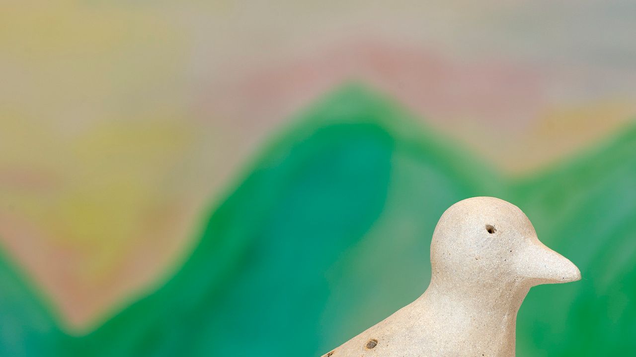 Rights reserved: Katia Kameli, Le rossignol, 2022, céramiques musicales en grès chamotté sur socle, vue de l'exposition Le Quantique des oiseaux, du 21 mai 28 août 2022, production : La Criée centre d'art contemporain © Marc Domage
