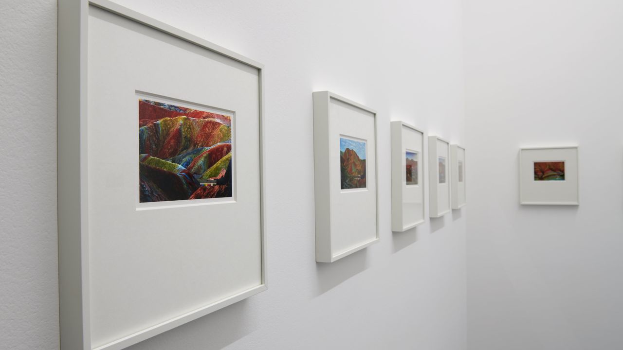 Avaler les cyclones is a landscape in which we drift between rainbow mountains, under a great fluorescent sun, along the borders of thunderstruck continents, caught up in the random turmoil of a sky composed of shades of grey.