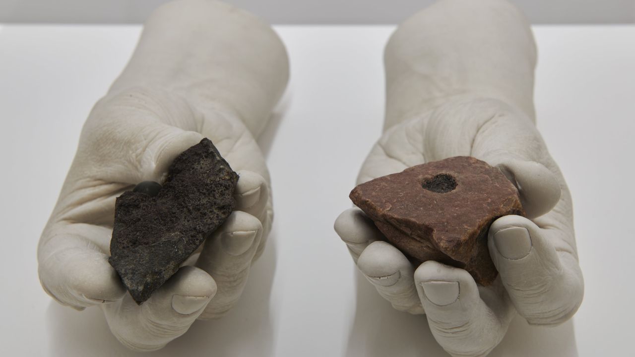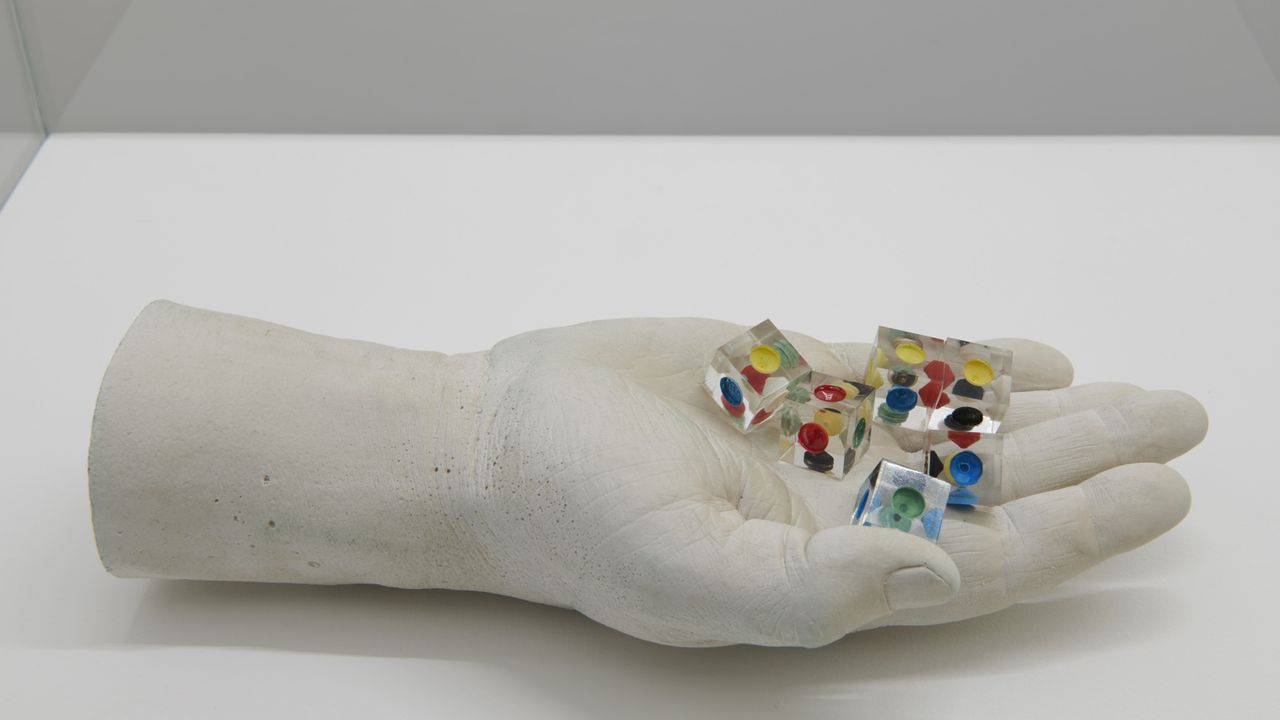 In Avaler les cyclones the human hand – that which holds the conductor’s baton, the architect’s pencil, but also the blind man’s cane or the dice of chance – is always present. Through these suspended gestures and various operations, it attempts to reappropriate the experience of long time******. The exhibition questions man’s place on earth, his power of invention and his demiurgic excess.