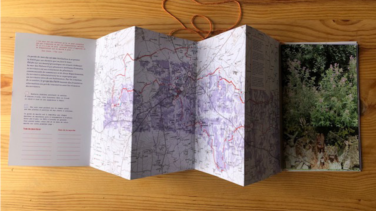 The guide contains the walking score: map, trail plan, it catalogs the plants and tells stories related to the places. It records the various artistic proposals developed for these landscapes: performances, exhibitions, creations, songs, photographs.