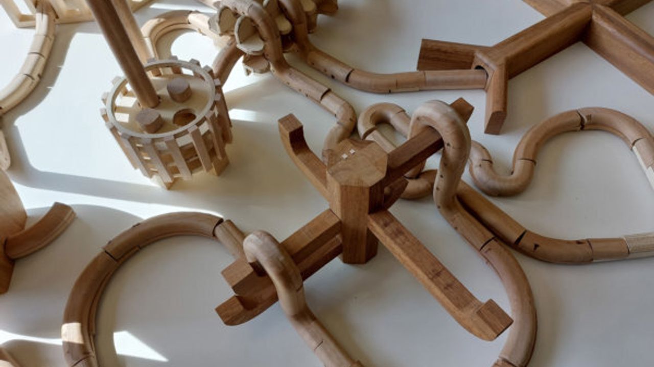 Julien Laforge and the students studied the geographical and hydrographic situation of the marshes of Dol-de-Bretagne. They drew inspiration from it to create numerous forms in various woods (red oak, linden, poplar).
