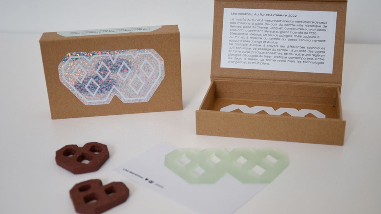 The pattern of Au fur et à mesure (as time goes by) is directly inspired by those of the timber-framed houses in Rennes' historic city center, at Place du Champ-Jacquet.