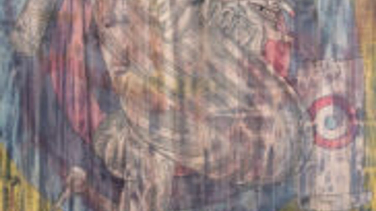 On retrouve cette revendication populaire et cet engagement politique dans le travail de Mathis Collins au travers du personnage de Polichinelle qu’il utilise dans ses œuvres accompagnées de son gourdin. Dans son tableau Artiste policier danseur de corde la figure du polichinelle est représentée en équilibre tel un funambule. Cette représentation fait écho aux artistes de rue italiens de la Commedia dell’arte, qui pour éviter la censure devaient s’élever. En effet, au-delà d’une certaine hauteur la liberté de parole leur était accordée. Les comédiens ont dû s’adapter pour contourner la censure qui sévissait à cette époque.