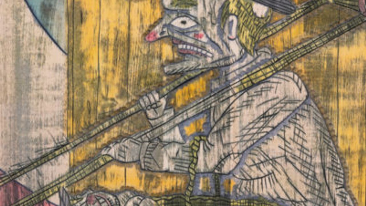 L’artiste peint une première fois le panneau de tilleul clair en noir, puis il ponce et répète ces deux actions successivement. Grâce à cette succession d’étapes, Mathis Collins accentue la couleur grâce au volume donné par la gravure. Quand nous parlons de peindre le panneau, il s’agit réellement de teindre l’œuvre. Dans la gravure de l’artiste nous remarquons une différence de graisse dans son tracé. Le jeu entre les traits fins et plus épais sculpte la surface où est appliquée la couleur. Ce qui a en finalité une incidence sur celle-ci. Et ne rendra donc pas le même effet. Ainsi, modeler la surface permet de modeler la couleur, c’est un moyen de transmettre une émotion de manière plus aiguisée.