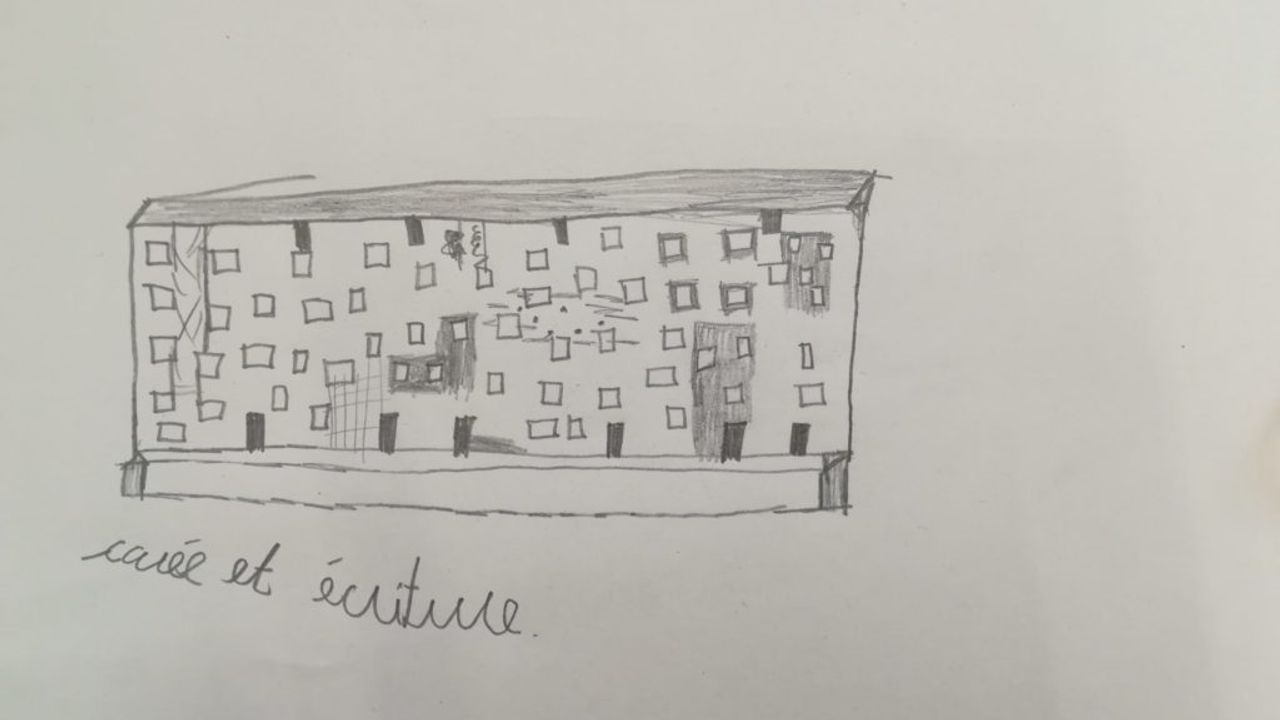 Les élèves de 5e du collège de la Binquenais sont venus découvrir les œuvres de Jockum Nordstöm, voici leur interprétation dessinée des immeubles et maquettes de l’artiste :