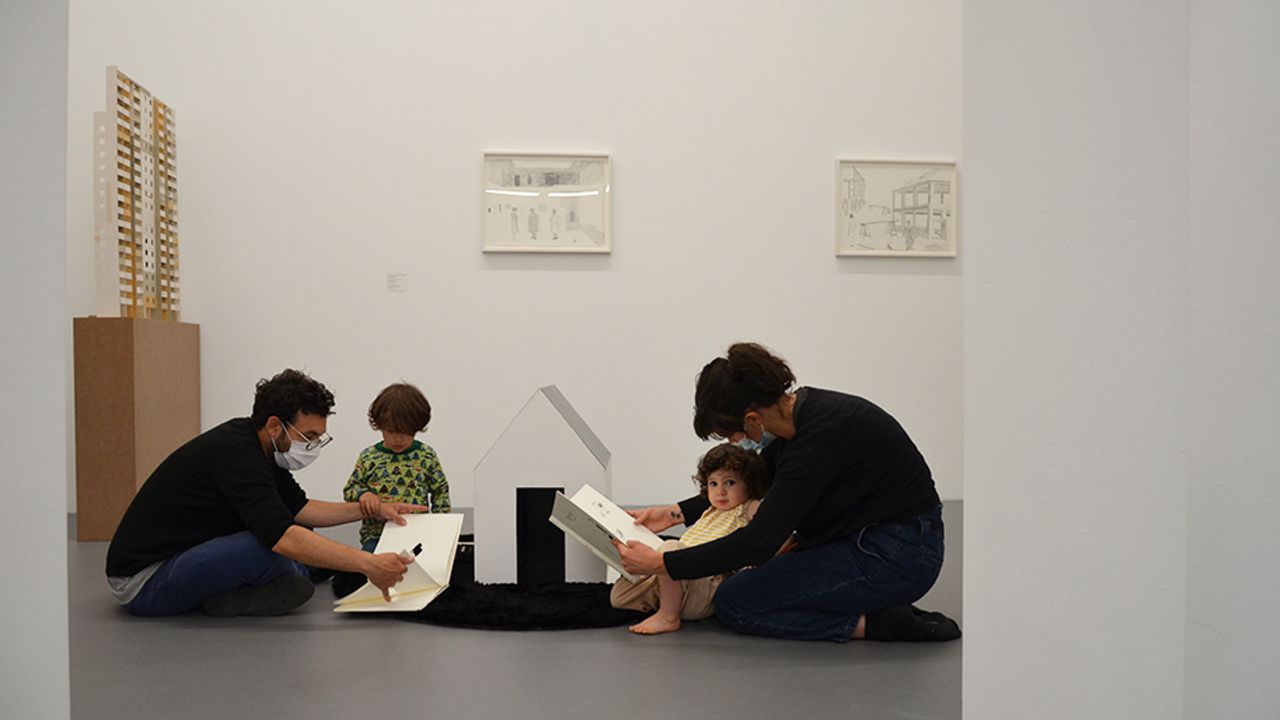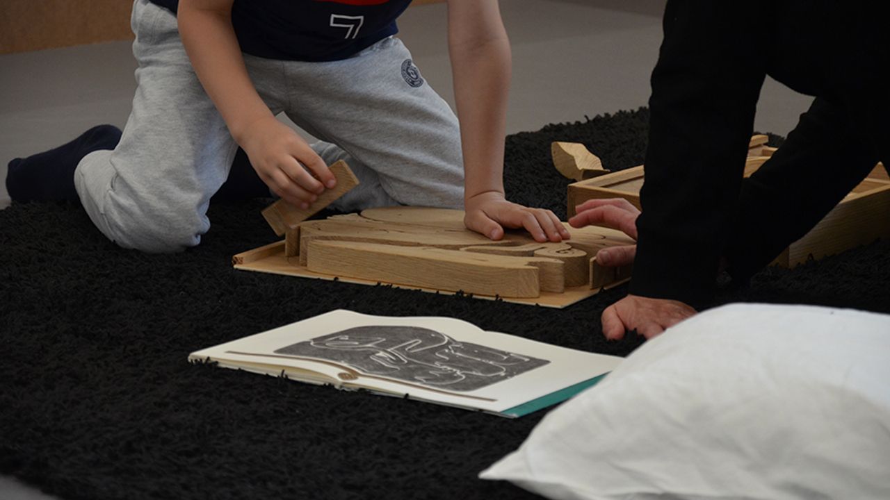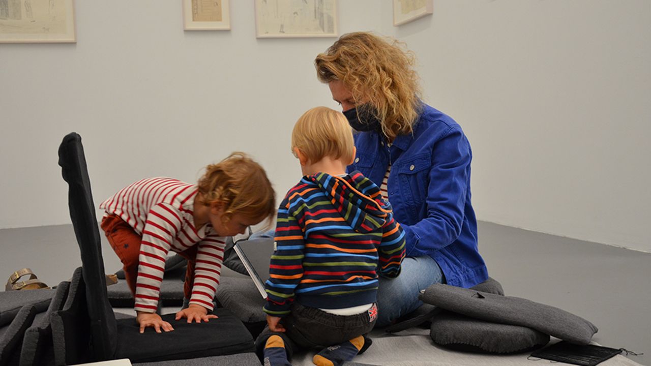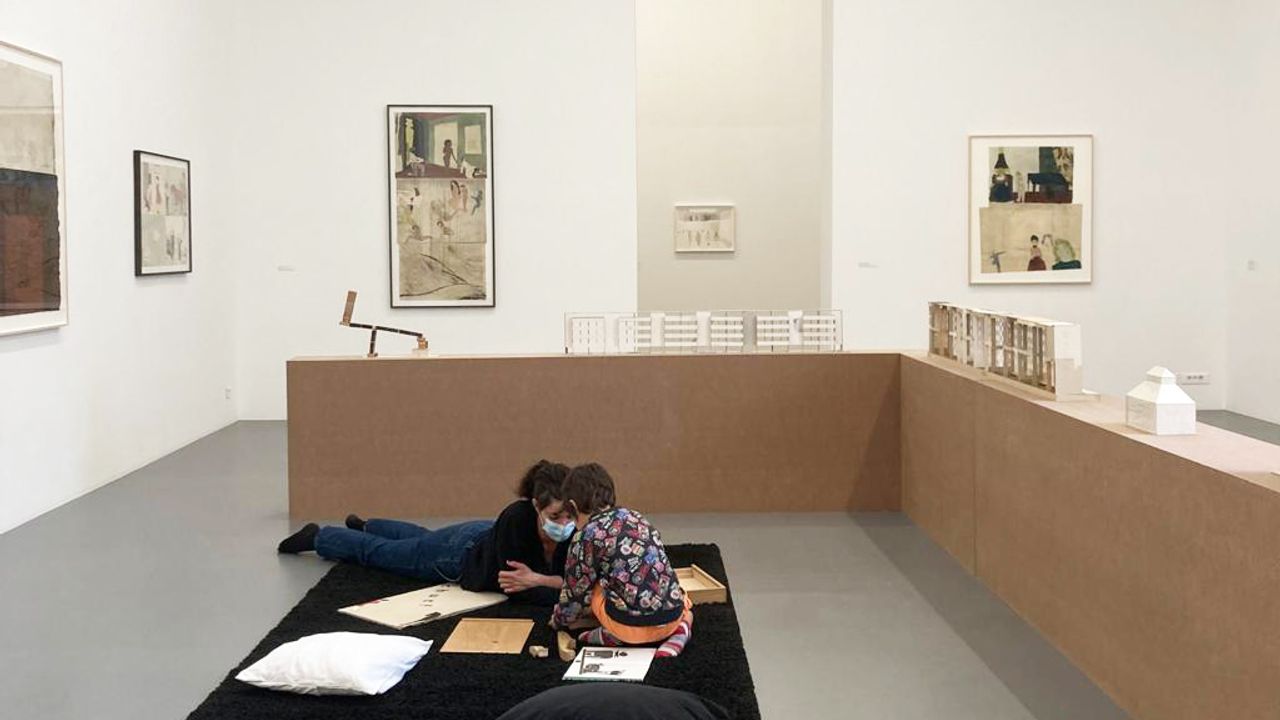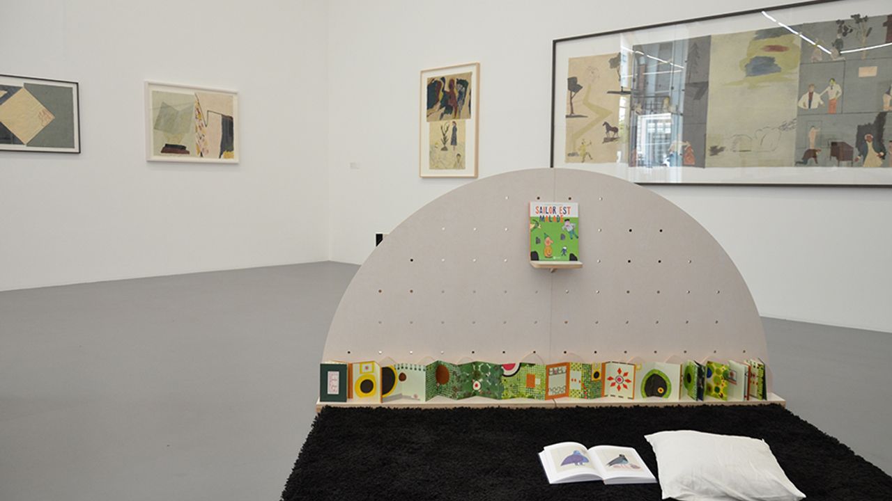 Petits et grands y ont ouvert des livres en tissus, en pop-up, en papier découpé, avec des gommettes ou encore en carton, avec peu ou pas de texte pour permettre à chacun d’explorer le toucher, et de s’inventer ses propres histoires. Chacun des livres sélectionnés tissait des liens thématiques ou formels avec les collages, maquettes et dessins présentés dans l’exposition Pour ne pas dormir. Ces espaces de lecture se sont déployés au sol, au milieu des œuvres de Jockum Nordström, en rapport à sa pratique d’illustration de livres pour enfants. Ses livres sont aussi à retrouver dans l’exposition, en consultation sur place.