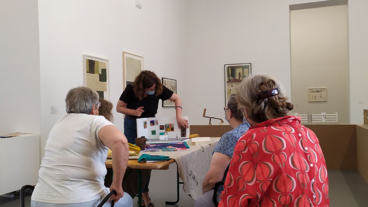 Pendant la visite commentée, chacune a pu partager ses impressions sur les compositions des collages, les silhouettes des personnages et les couleurs utilisées. S'en est suivie une partie animée du jeu LiZellBa, qui a ravi tout le monde et donné lieu à une belle création intitulée « Détente estivale » que vous pouvez retrouver ici.