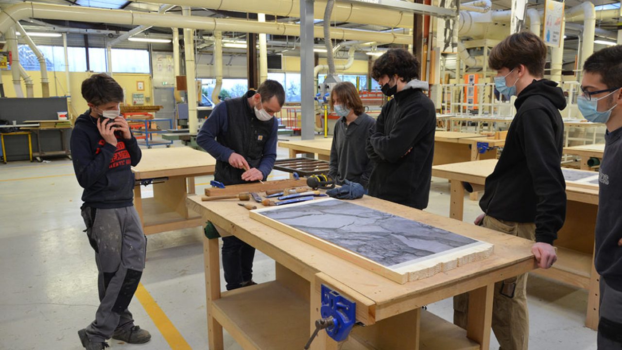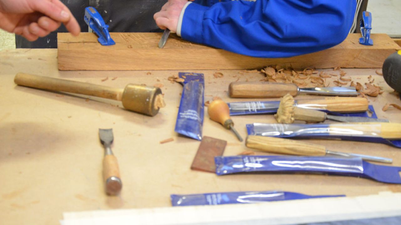 Les élèves se sont entraînés à utiliser des gouges, certaines plus plates que d’autres, d’autres en forme de V.