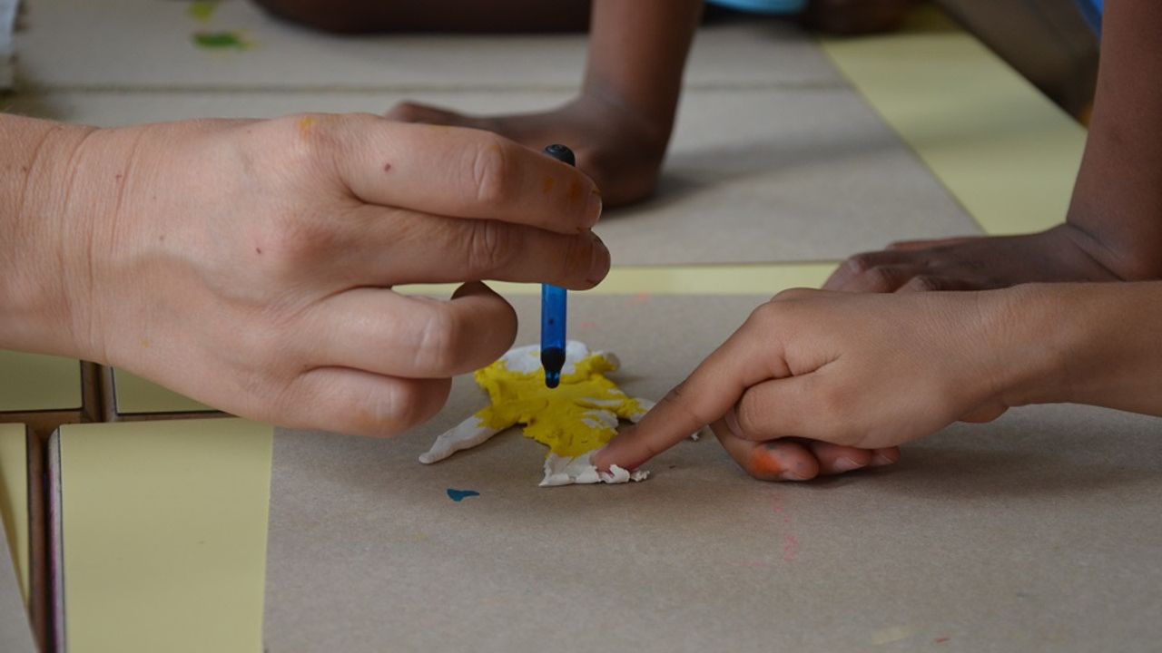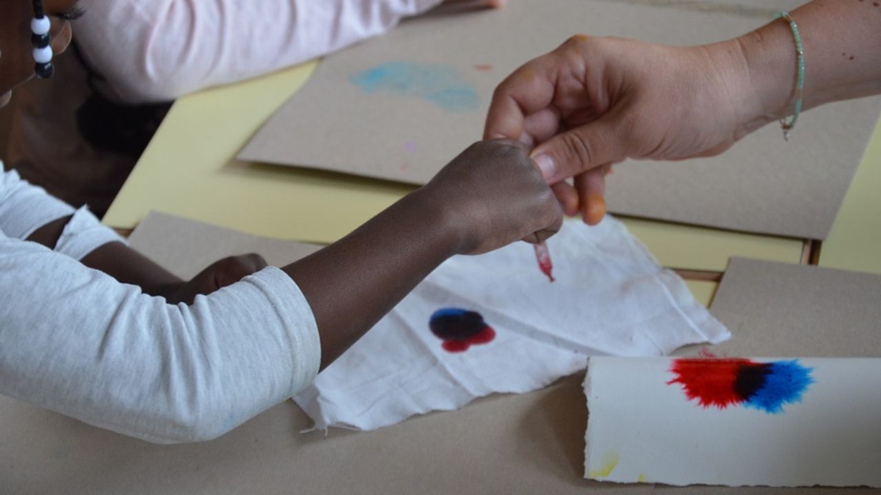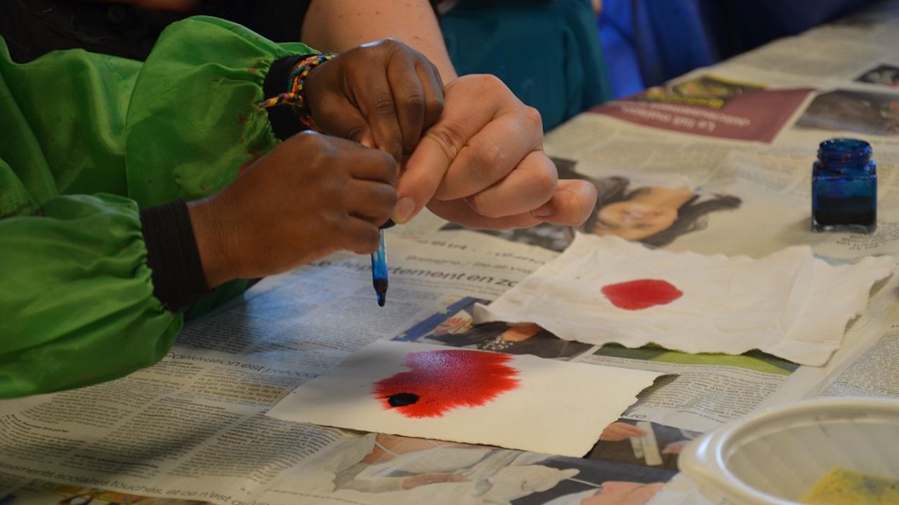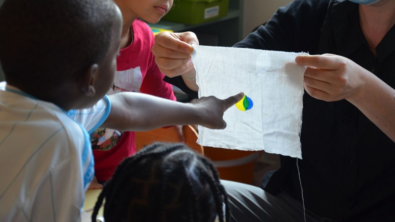Les médiatrices de La Criée se sont rendues dans deux classes de l’école maternelle Jacques Prévert pour y mener un atelier autour de l’encre et de la couleur, en lien avec l’exposition Le Cantique des Oiseaux de Katia Kameli.