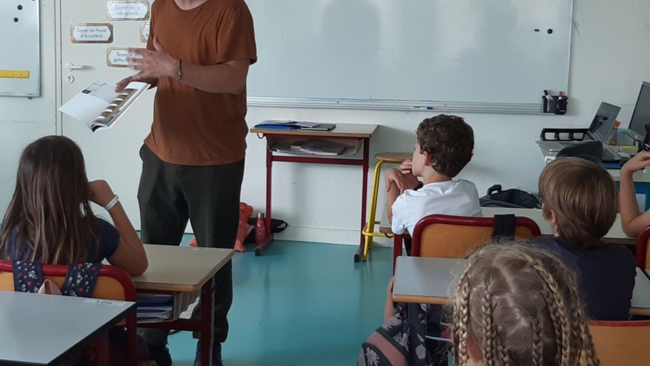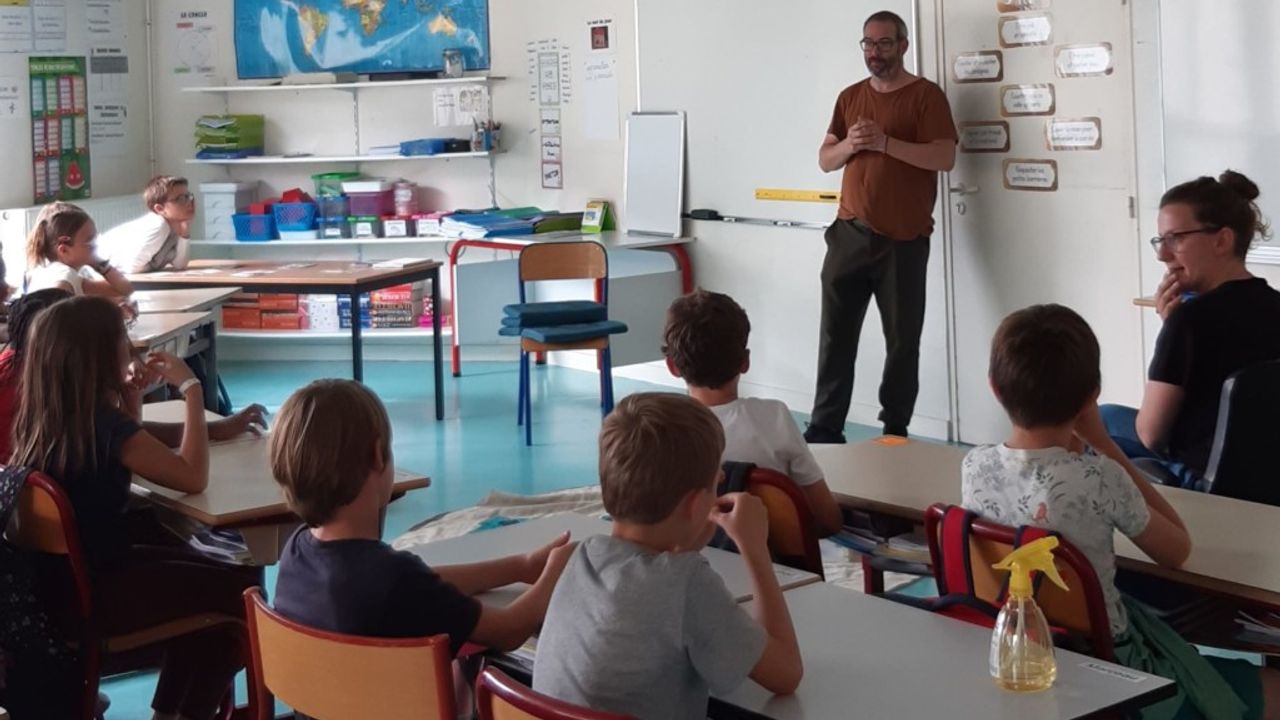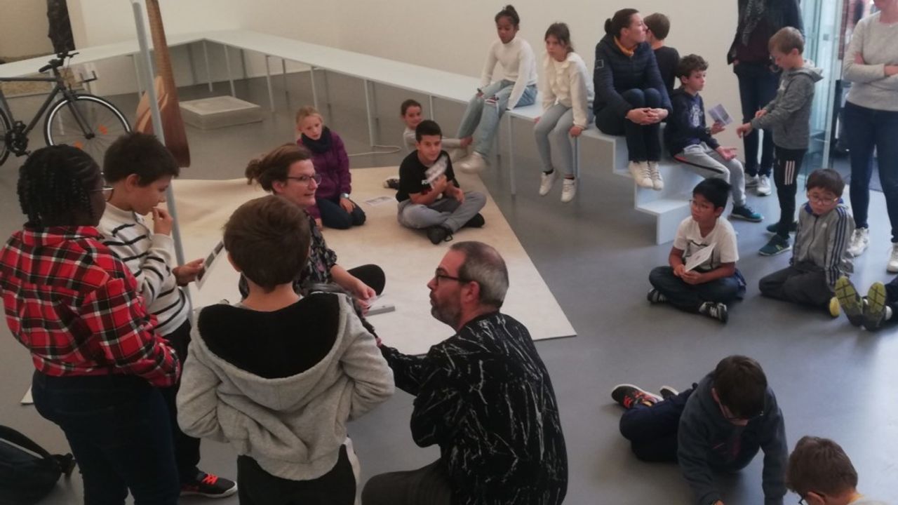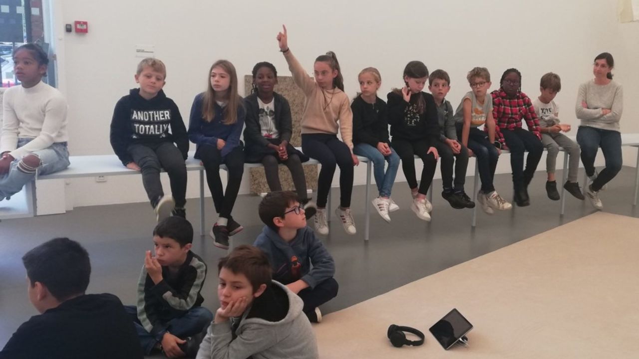 Tout d’abord, Simon Poligné et l’équipe de la Criée ont rencontré les élèves dans leur classe afin de se présenter et d’échanger autour des activités du centre d’art avec le jeu LiZellBa, grâce auquel les enfants ont pu découvrir les expositions passées, comment on « accroche » une exposition ou encore les différents métiers.