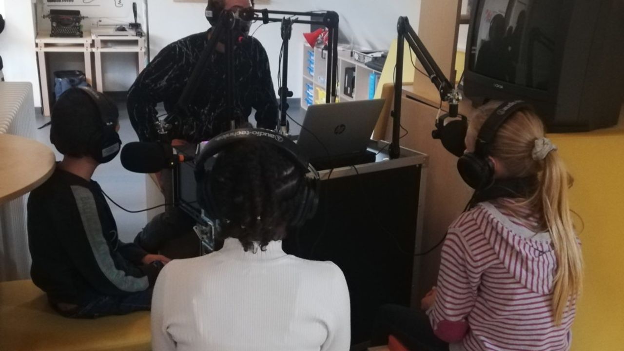 Simon Poligné est le premier artiste invité pour accompagner les élèves de CM1-CM2 de l’école Jules Verne à Chevaigné dans la création de récits et la réalisation d’un podcast autour de l’exposition The Sun Is My Only Ally de Charbel Joseph H. Boutros.