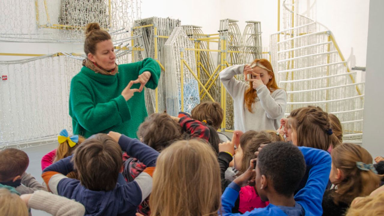 Au cours des dernières semaines, plusieurs classes de scolaires ont été accueillis à La Criée pour une visite de l’exposition Grand Air de Judith Kakon. L’occasion pour les élèves de découvrir l’exposition tout en profitant d’un atelier tampon et d’un jeu de point de vue.