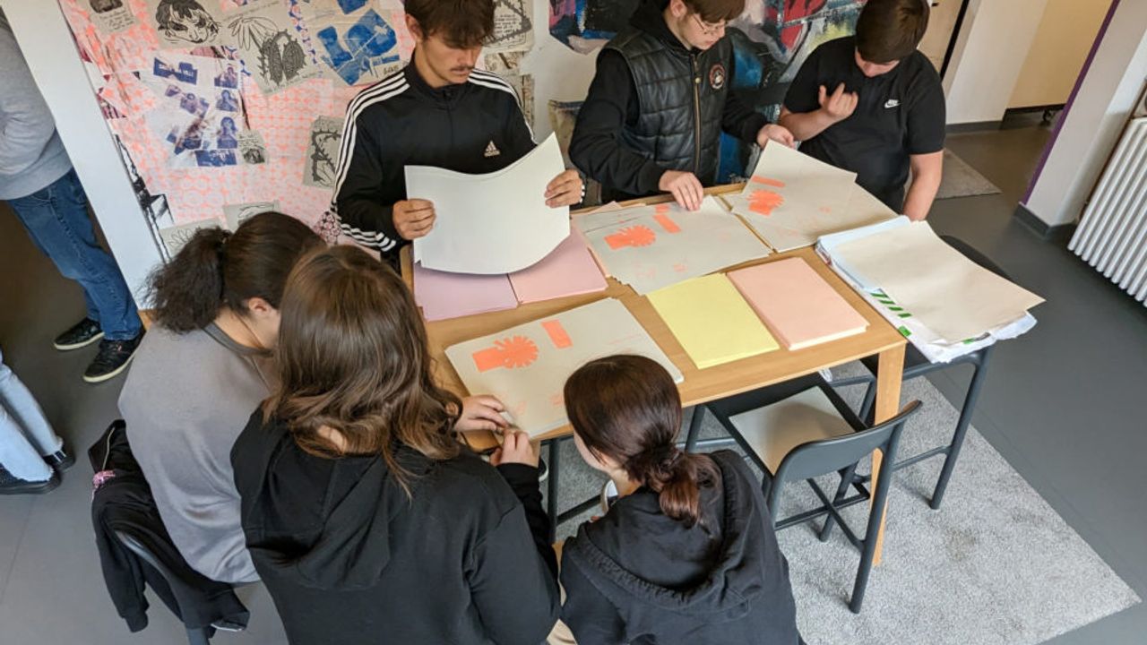 Fanny Martel est la deuxième artiste invitée pour accompagner les 12 élèves de 3e Prépa Métiers du lycée Alphonse Pellé à Dol-de-Bretagne dans la création d’un fanzine autour de l’exposition GRAND AIR de Judith Kakon.