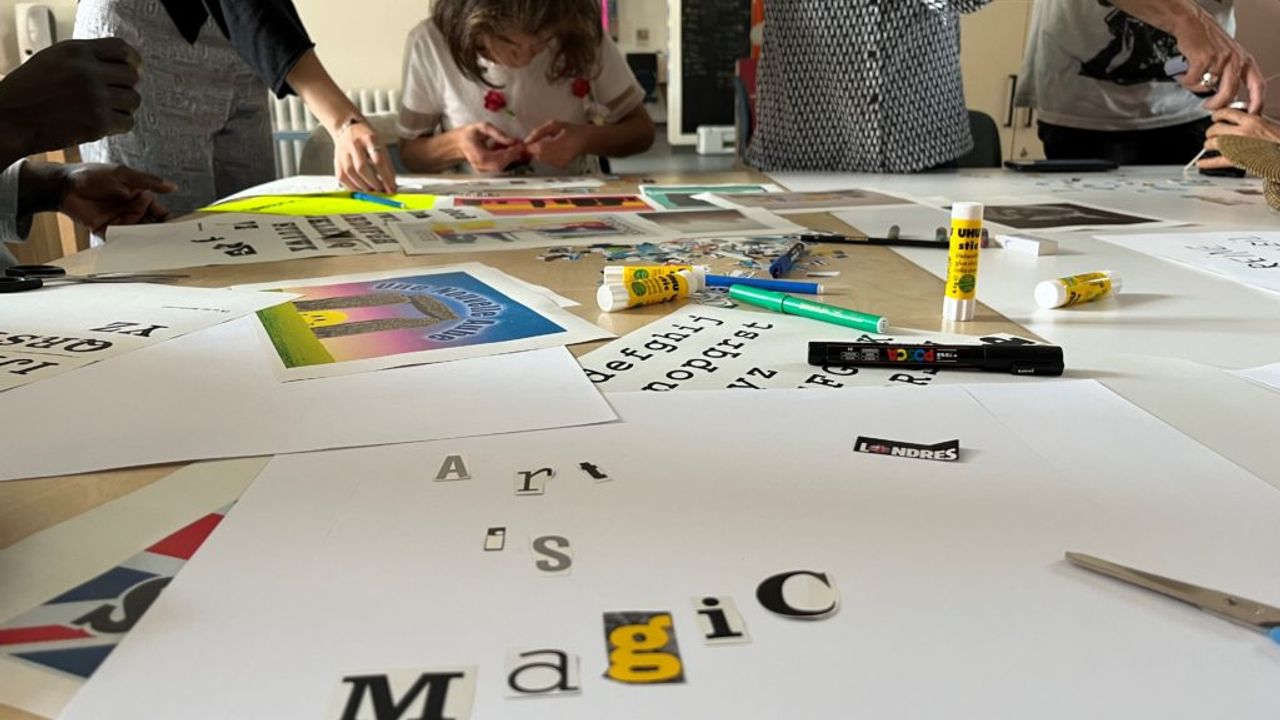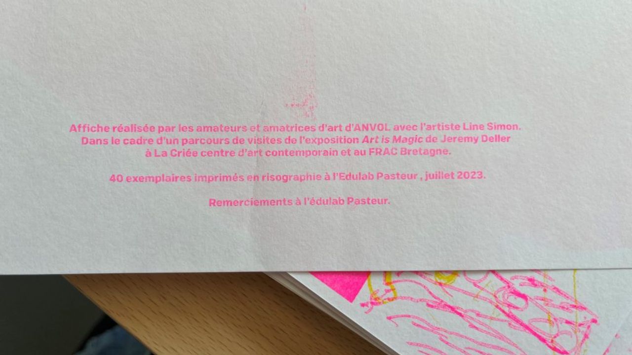 À l’occasion de l’exposition Art is Magic, et dans le cadre d’Échos d’expo, projet de découverte des expositions et création d’objets de médiation par les élèves pour les élèves, l’artiste Line Simon mène plusieurs ateliers de création d’affiches autour de l’installation Warning Graphic Content de Jeremy Deller. Ces ateliers se déroulent à l’édulab Pasteur.