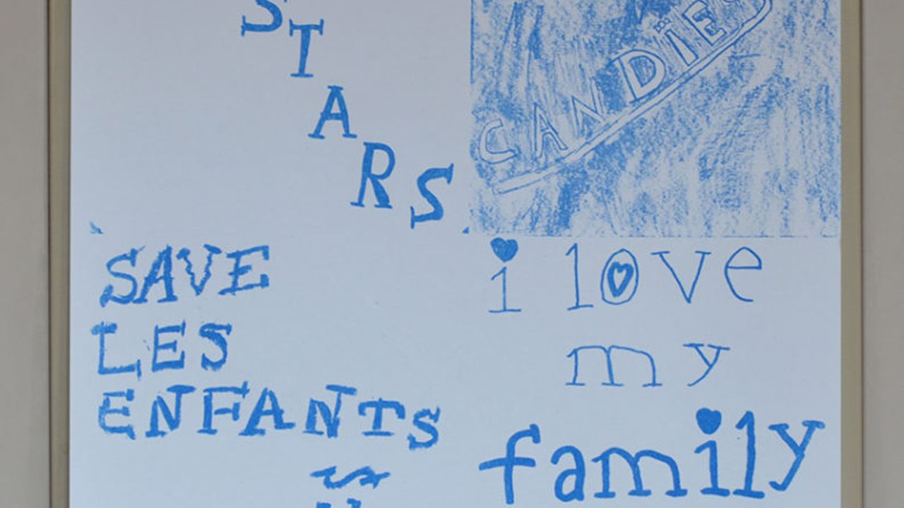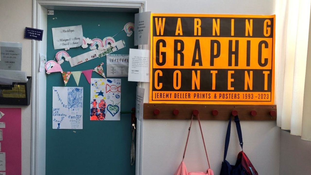 Le parcours Échos d’expo commence par la visite de l’installation Warning Graphic Content à La Criée. Les participants déambulent librement dans l’espace, découvrent le travail de l’artiste et expérimentent la création de slogans à partir d’une sélection d’affiches. Certaines formules de Jeremy Deller sont retravaillées : « I love Patrick Caulfield » se transformant en « I love my family », ou « Save the Hen Harrier » devenant « Save the world ». Ce moment offre un échange privilégié entre les enfants et avec les médiatrices. Y sont abordés les thèmes dont les enfants ont à cœur de parler, en résonance avec les sujets présents dans les affiches de Jeremy Deller : l’environnement, la protection des animaux, les rapports entre les hommes, la musique. Le jeu, le sport et la nourriture, sont aussi évoqués à travers leurs propres références.