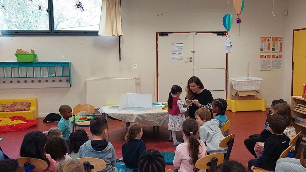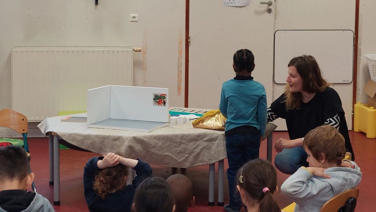 Dans le cadre du parcours Correspondances, les élèves de l’école maternelle Champion de Cicé, ont découvert la Criée autour d’une présentation en classe. Les deux classes qui se sont succédé ont ainsi pu prendre connaissance du centre d’art contemporain à partir de la maquette de La Criée, utilisée dans le jeu LiZellBa. Les enfants étaient amenés à piocher une œuvre miniature, puis à la montrer à la classe. Certains objets passaient de main en main et suscitaient des interrogations pour certains ou émerveillement pour d’autres de par leur matérialité : bois, tissus, terre, couleurs…