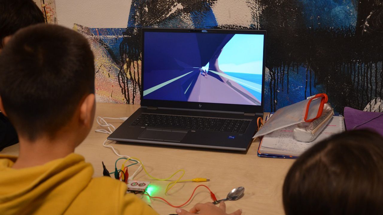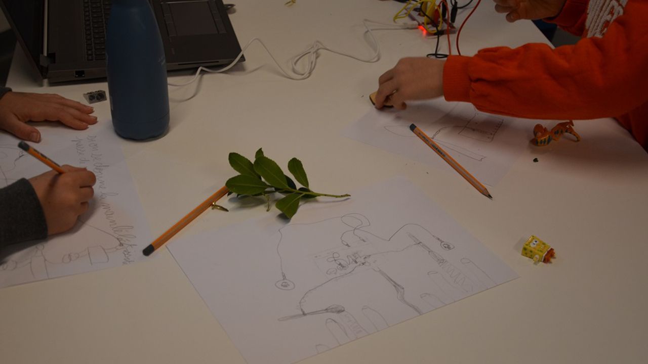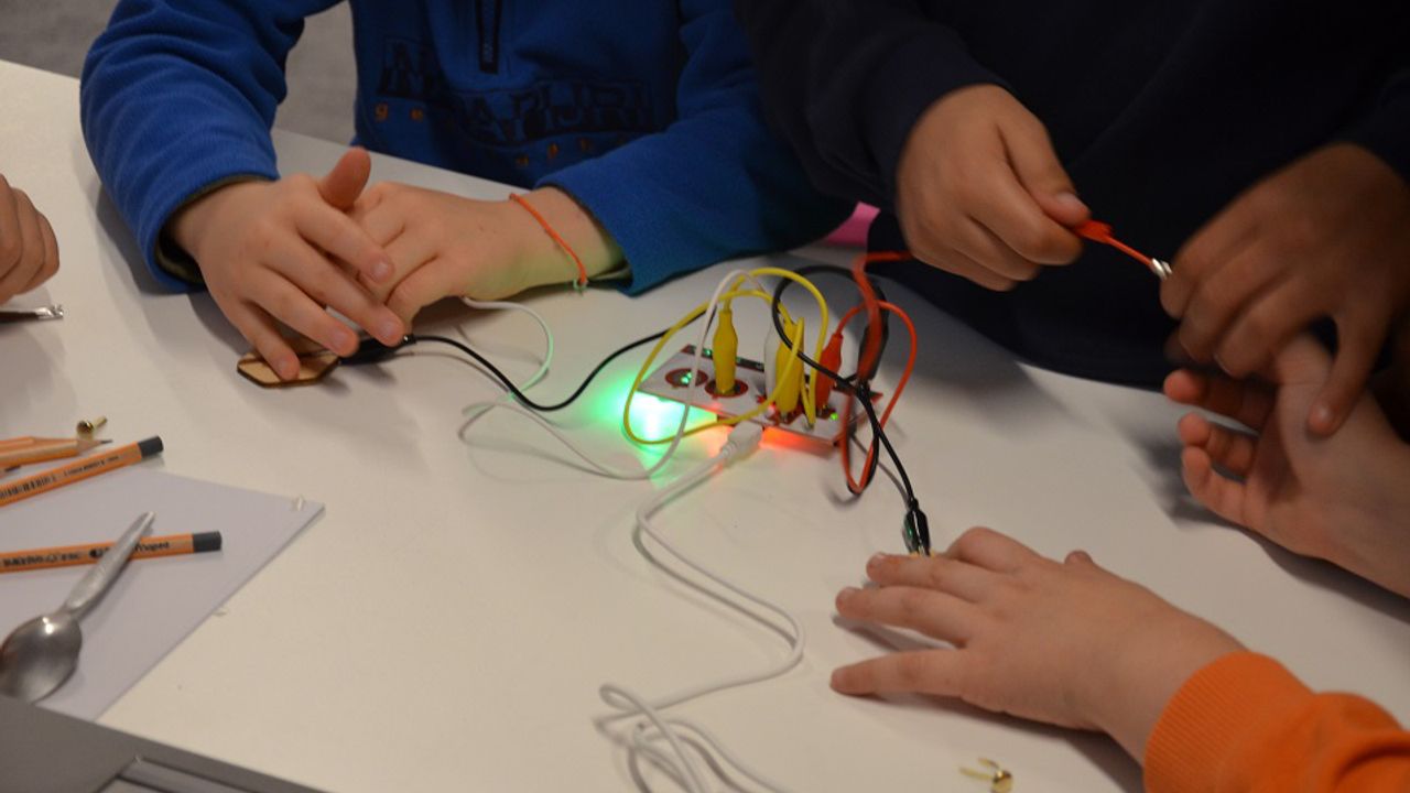Chaque groupe d’enfant avait à sa disposition un petit boîtier électrique, avec différents câbles et pinces. Le tout formait un circuit électrique relié à un ordinateur. À partir de ce circuit électrique, les enfants pouvaient jouer à un jeu vidéo diffusé sur l’ordinateur. Ceux-ci pouvaient également tester différents objets pour tester leur conductivité ((cuillères en métal, petits objets en plastique, …)) Après avoir compris le fonctionnement d’un circuit électrique, les CE2 ont réalisé un petit schéma explicatif.