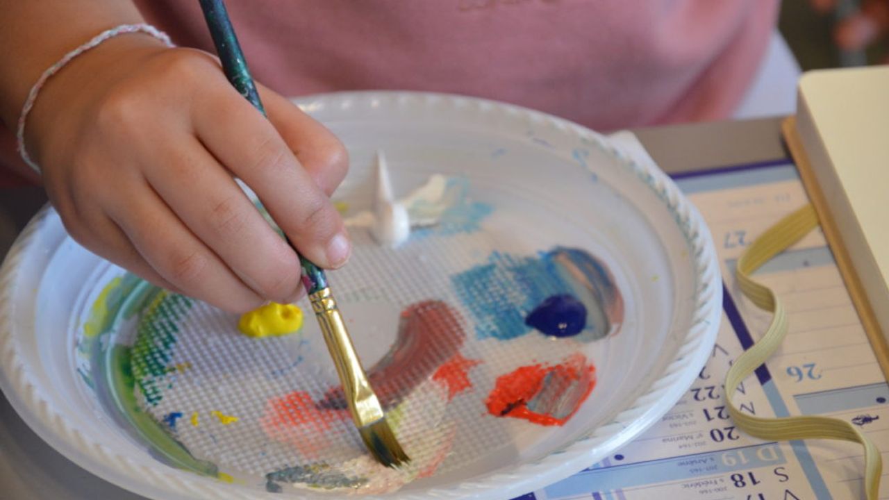 Les enfants s’installent à leur bureau, tandis que Gabrielle leur rappelle qu’ils peuvent changer de position s’ils sont plus à l’aise debout. Chaque élève reçoit une palette de quatre couleurs ((jaune, rouge, bleu et blanc)), un pinceau, un verre d’eau et un sopalin. Ils commencent à expérimenter avec les couleurs, Les couleurs se multiplient, certains se targuent d’avoir créé une couleur unique tandis que d’autres interpellent Gabrielle afin de lui demander comment faire du violet.