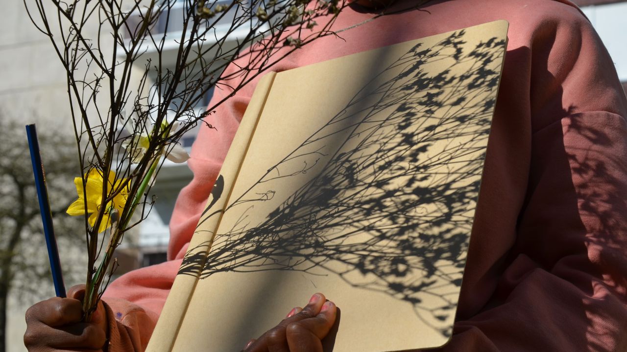 Concentrés, ils dessinent et colorent ce qu’ils voient. Gabrielle remarque l’initiative d’une élève. Au lieu d’utiliser des crayons de couleur, elle utilise directement les plantes pour colorier ses dessins. En frottant les feuilles sur les pages de son carnet, elle réussit à obtenir plusieurs nuances de vert. Gabrielle partage cette initiative avec le reste du groupe, qui essaie à son tour la pigmentation naturelle.