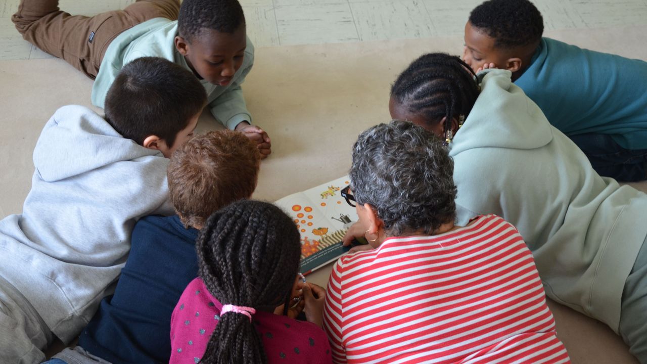 Pour les enfants qui ont terminé rapidement l’activité, Gabrielle propose à ceux qui le souhaitent de leur lire une histoire. Ils sont installés allongés sur le tapis et elle leur lit à voix haute deux livres. Ces livres sont particuliers, car c’est Gabrielle qui les a illustrés : Excuses-excuses et La chose bizarre.