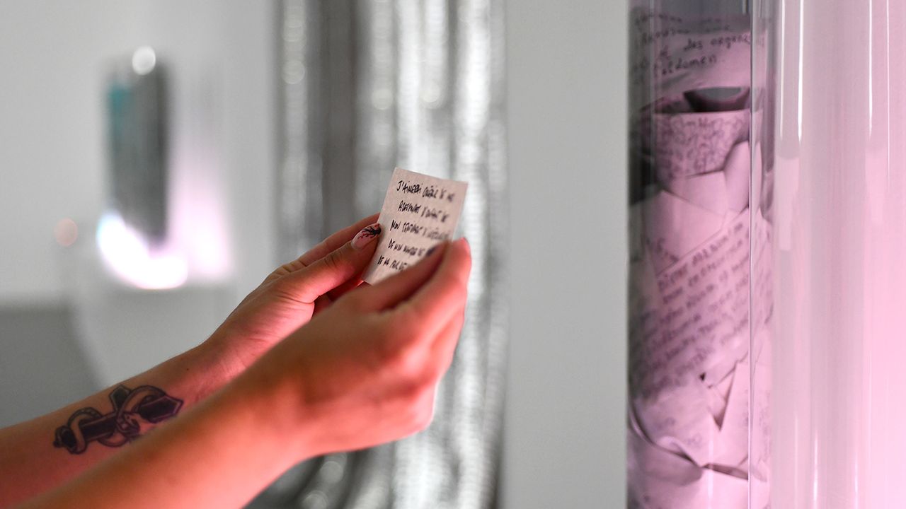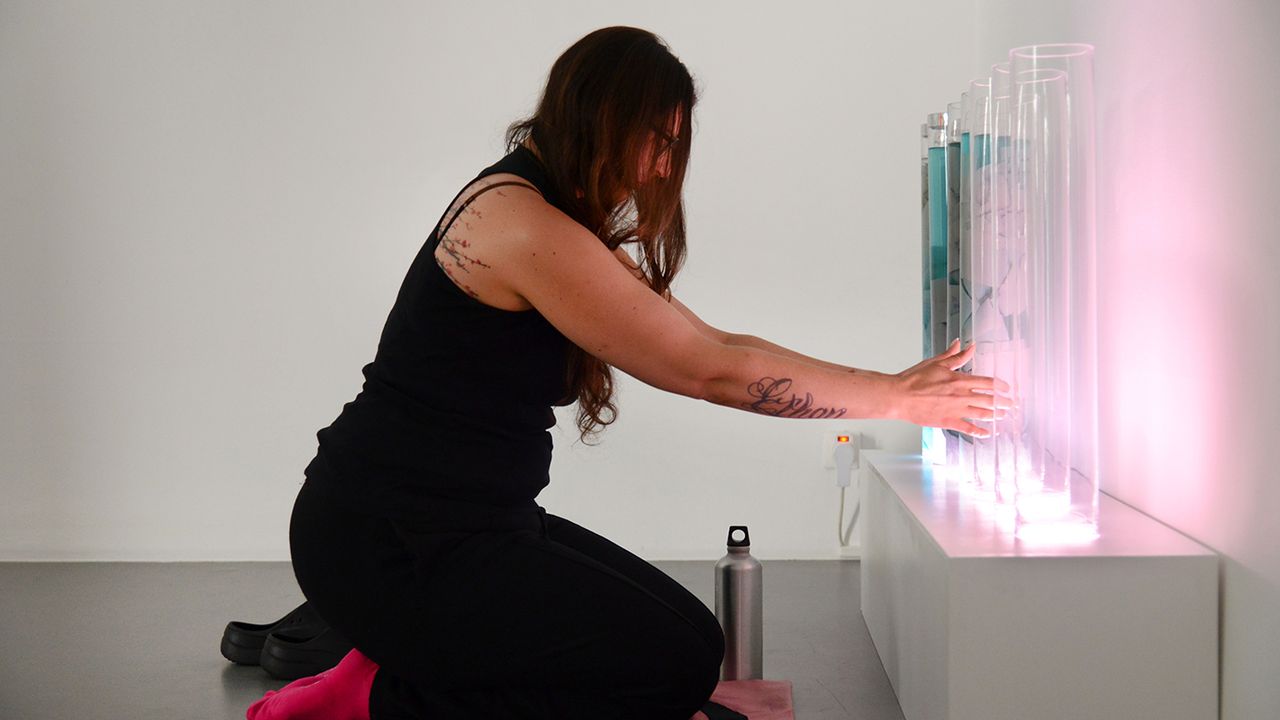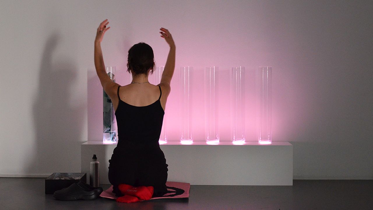 Chanteuse et performeuse, Violaine Lochu a placé les performances au cœur de ses créations, et en particulier sous la forme de rituels imaginaires dans son exposition Pharmakon/Reboot à La Criée. Afin de maintenir vivant l'esprit de la performance pendant toute la durée de l'exposition, elle a souhaité que les équipes d'accueil et de médiation de La Criée puissent réaliser des performances autour des vœux de guérison des visiteur.euses. Pendant trois jours en amont de l'exposition, Violaine Lochu a ainsi formé les équipes de La Criée à une performance très précise mêlant gestes et voix, pensée par ses soins pour l'exposition.