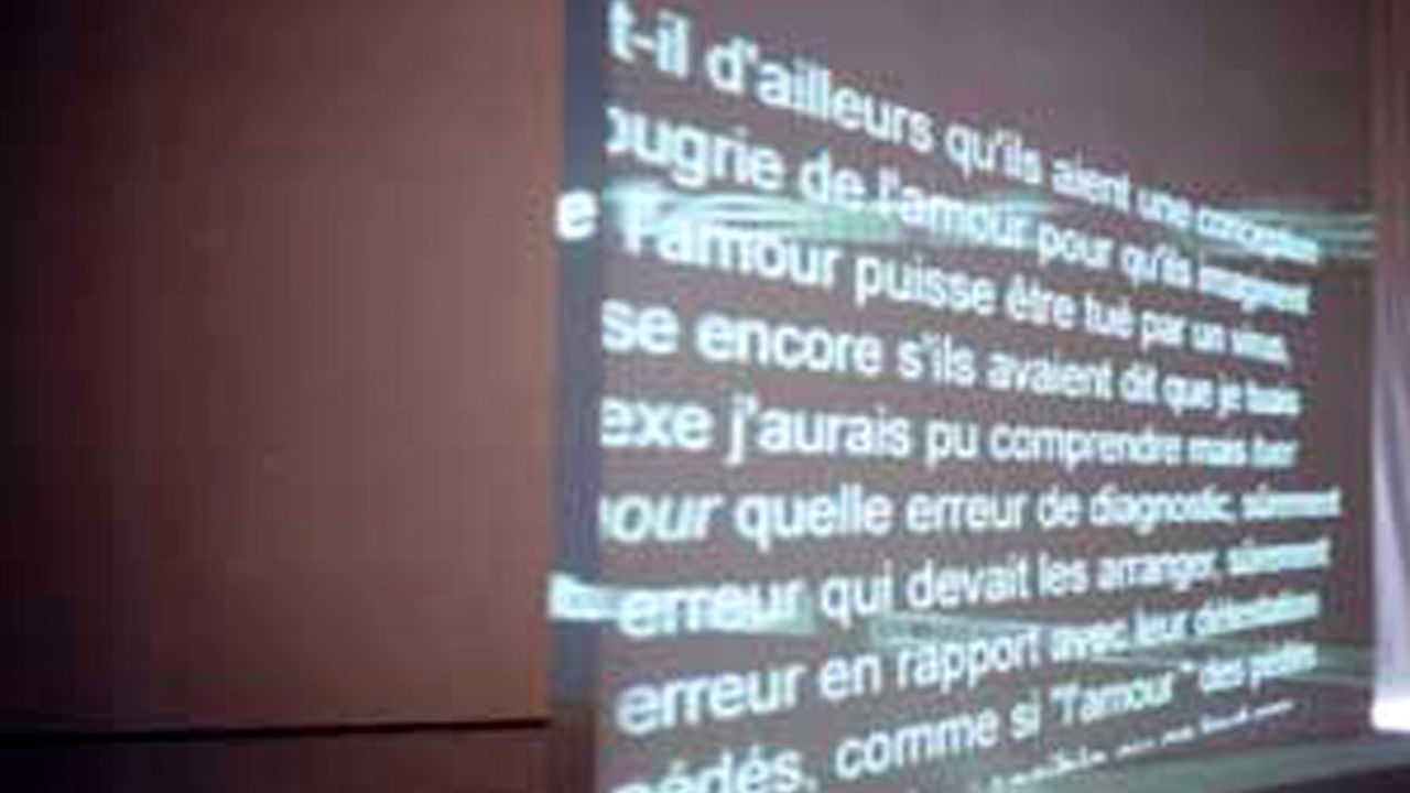 Nous souhaitons faire de l’espace investit un espace de conversation -- propagation d’images, de sons, de documents, de paroles. Voir, lire, entendre, prendre à l’image inversée de ce jeu d’enfant repris par Keith Haring dans l’un de ses posters pour Act Up, Ignorance = Death : se voiler les yeux, se boucher les oreilles, obstruer sa bouche. Des mots à lire, à voir, à écouter.
