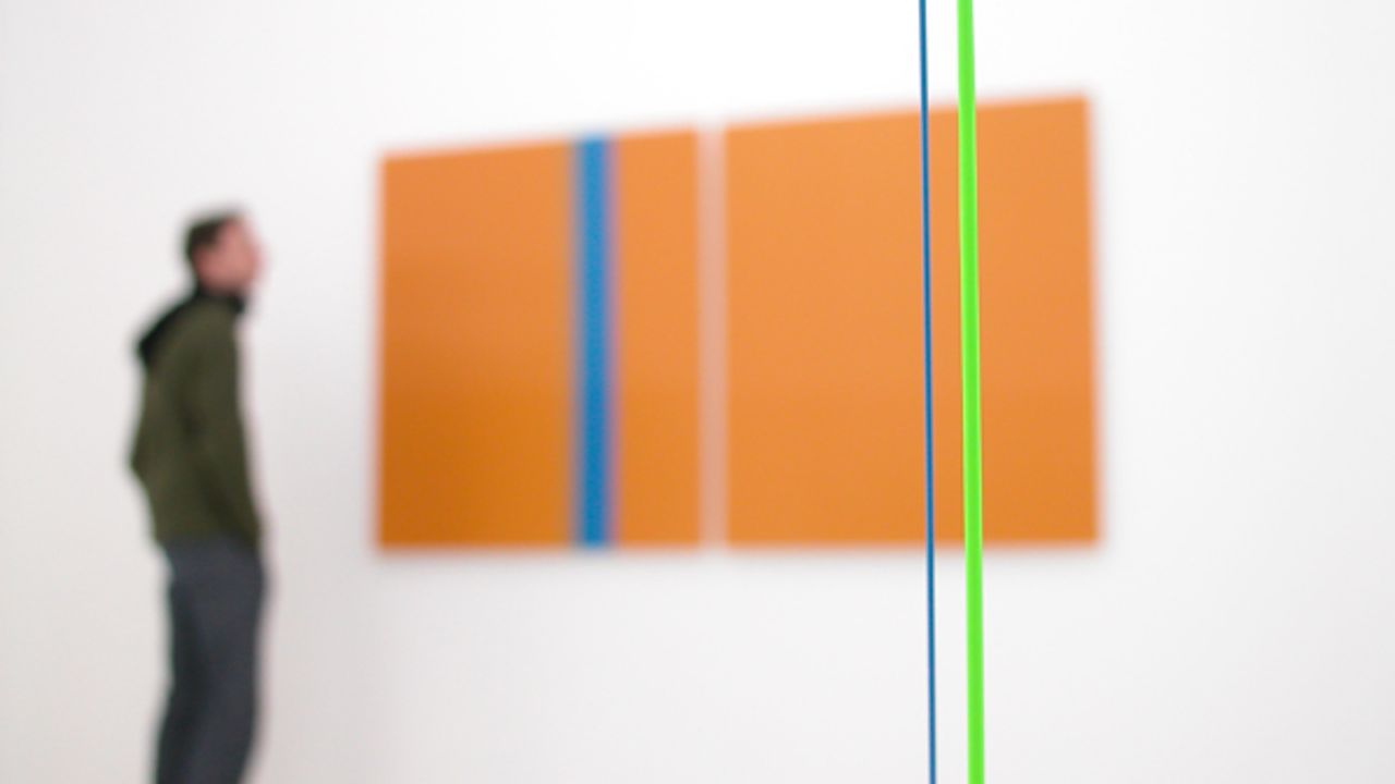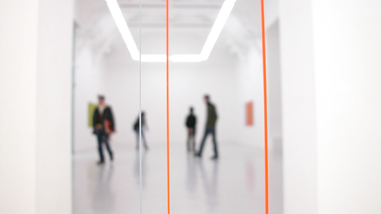Avec les Peintures numéro 24 à numéro 28, produites à l’occasion de l’exposition, Yann Lestrat présente une série de diptyques (120 cm x 212 cm), appliquant la technique de l’image en relief sous réseaux lenticulaires. Ces tableaux révèlent l’expérience visuelle d’un relief variant et polychrome sur des surfaces planes. Abordant les salles d’exposition comme un unique univers de perception, il tend du sol au plafond des lignes de couleur, qui baignent dans une lumière blanche, intense, diffusée par des tubes fluorescents, composant ainsi une peinture autonome. Yann Lestrat propose une déambulation contemplative, fonctionnant sur un va-et-vient indistinct et persistant des couleurs et des volumes.