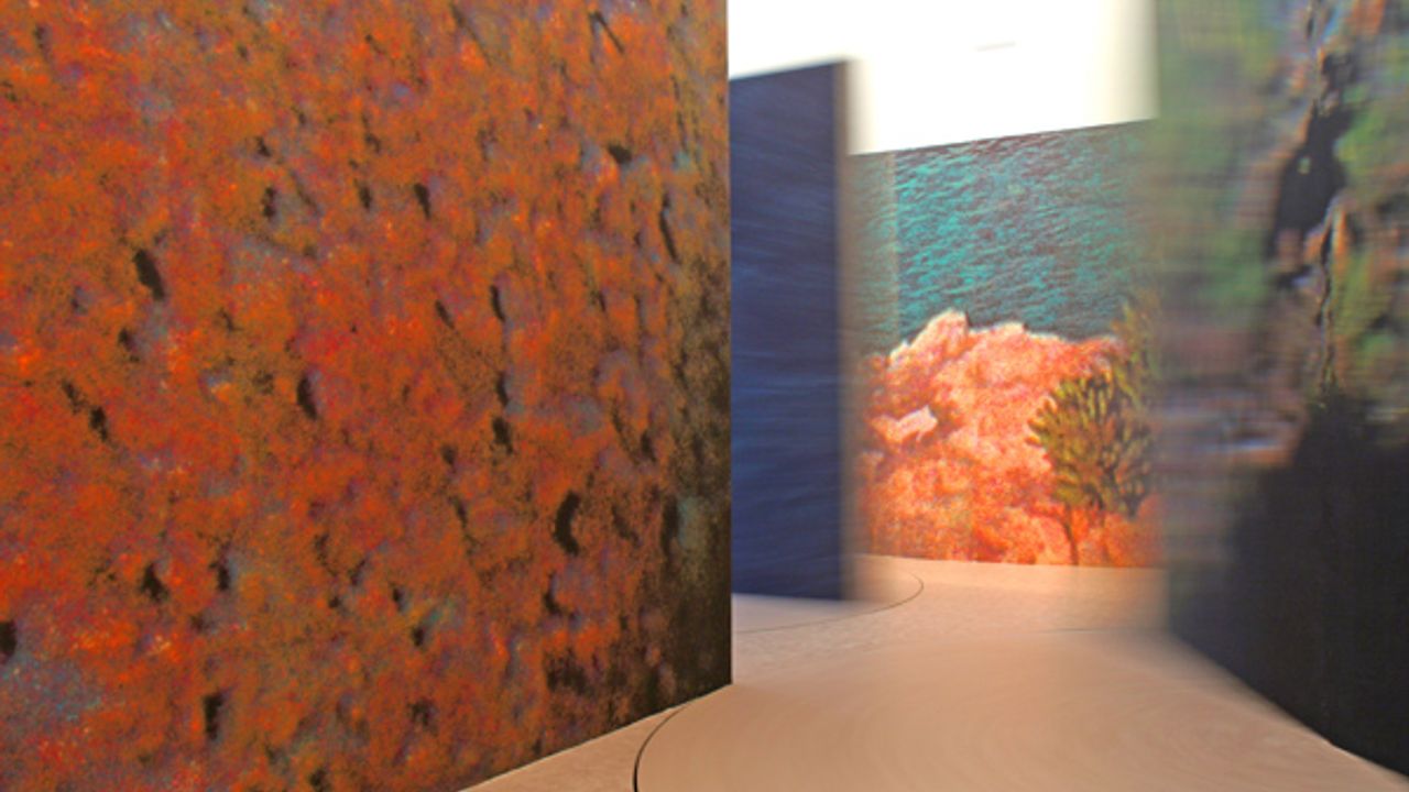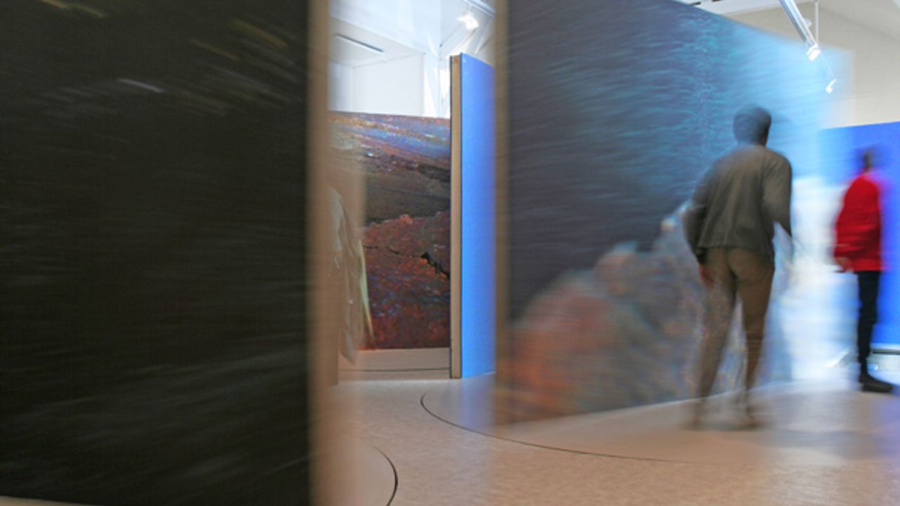 PALAISPOPEYE à la renverse : l’architecture labyrinthique et le déploiement de l’image photographique donne au spectateur l’illusion d’habiter réellement l’image, d’en être le personnage central. Dans le même temps, le grossissement de l’image, sa matière pixelisée trouble la vision et, associée à la rotation des cloisons, provoque un vertige ou une sensation d’ivresse. A ce stade, l’image ne peut plus être maîtrisée du regard dans sa totalité, abandonnant son statut de représentation pour s’inscrire dans l’espace et dans le corps en fantasme.