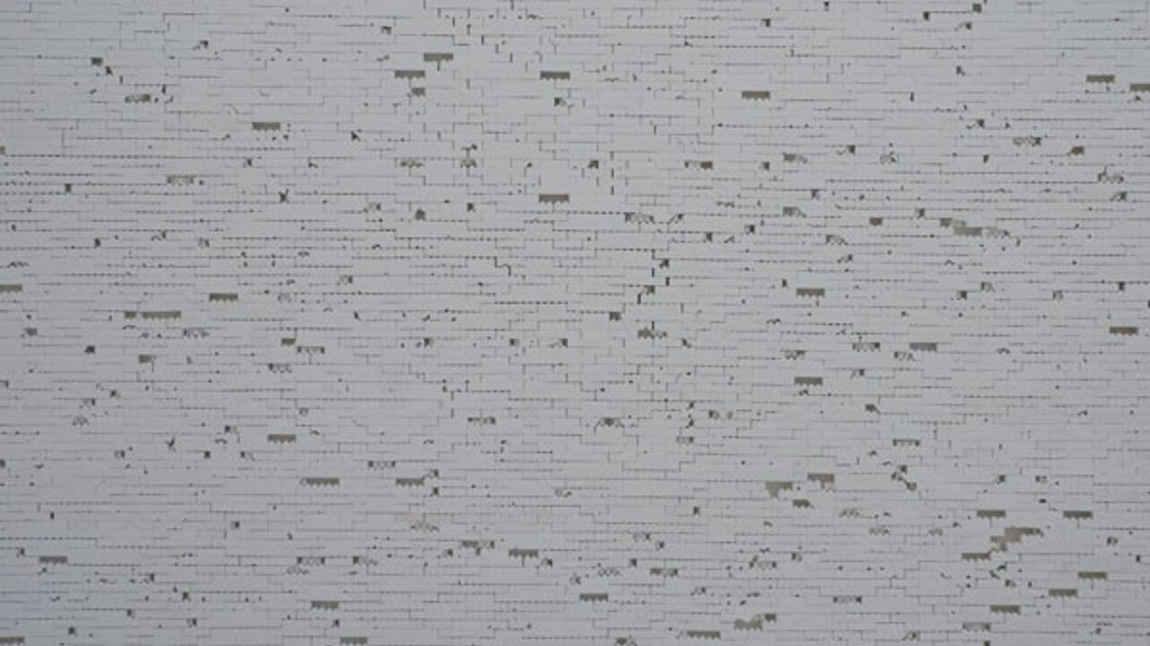 Risk confronte cinq artistes pour la qualité et la diversité de leur travaux de peinture, d’installation et de sculpture. Les créations sont spécifiques à chaque artiste, voire opposées les unes aux autres, mais elles se retrouvent pour rendre sensible les notions de précarité-puissance, solidité-fragilité, consistance-affaiblissement, réussite-échec qui infiltrent les champs de l’esthétique et du politique. Le rapport à l’architecture est traité notamment par le câble en tension extrême de Claire Daudin ou les assemblages de briques élémentaires pour enfants remoulés en plâtre-marbre d’Aline Morvan. La fabrique de l’image, tant dans sa dimension de plaisir, de critique ou d’autodérision, est investie par les peintures de Julien Quentin et l’installation performance de Julien Duporté. Enfin, la craie surdimensionnée en charbon noir d’Estrella Estevez s’adosse au mur de La Criée tel un pur objet minimal ou encore comme un étranger radical au cube blanc du centre d’art.