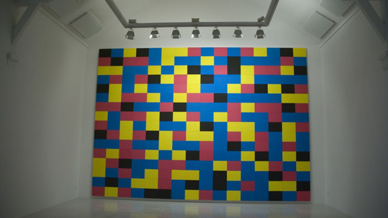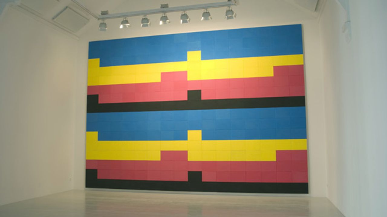 La Criée présente un Macro-monochrome gris à la composition aléatoire et évolutive au fil de l’exposition, grâce à un système de panneaux en contre-plaqué repositionnables. En regard de cette pièce, l’installation Heureusement qu’on a la publicité vient encombrer l’espace d’objets consommables et consommés. Dans la petite salle, l’exposition se complète par la présentation d’une maquette d’architecture Pour ne pas mourir, je ne finirai pas ma maison. Pourquoi finir celle des autres ?