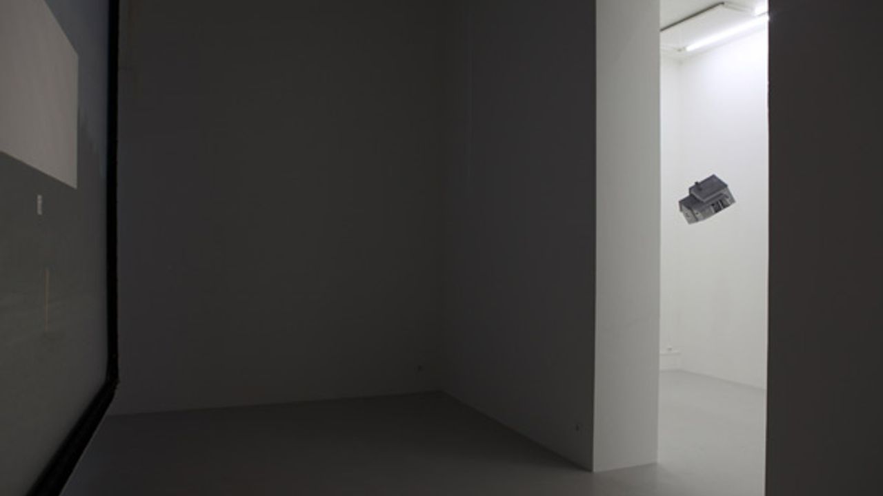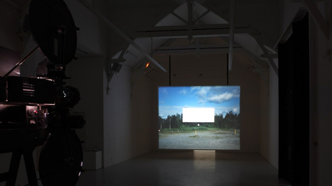 L’exposition accueille aussi Cinéparc, plan fixe sur l’écran d’un « drive in » filmé de jour. L’écran cinématographique est ici mis en abyme au travers de sa propre projection au sein de l’espace d’exposition. Dans ce film projeté en 35mm, l’écran se détache sur fond de paysage et semble fonctionner comme un cache dans l’espace de l’image. Il perd ainsi sa dimension d’objet et son échelle, jusqu’à ce que des oiseaux viennent s’y poser et ramènent discrètement le spectateur à la réalité de l’image.