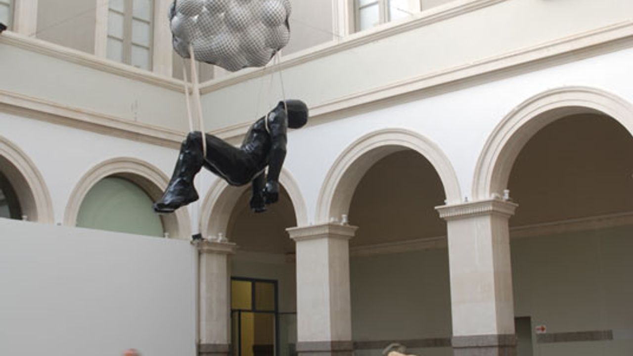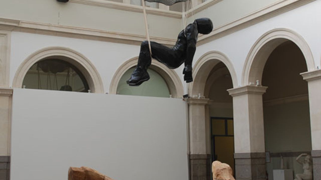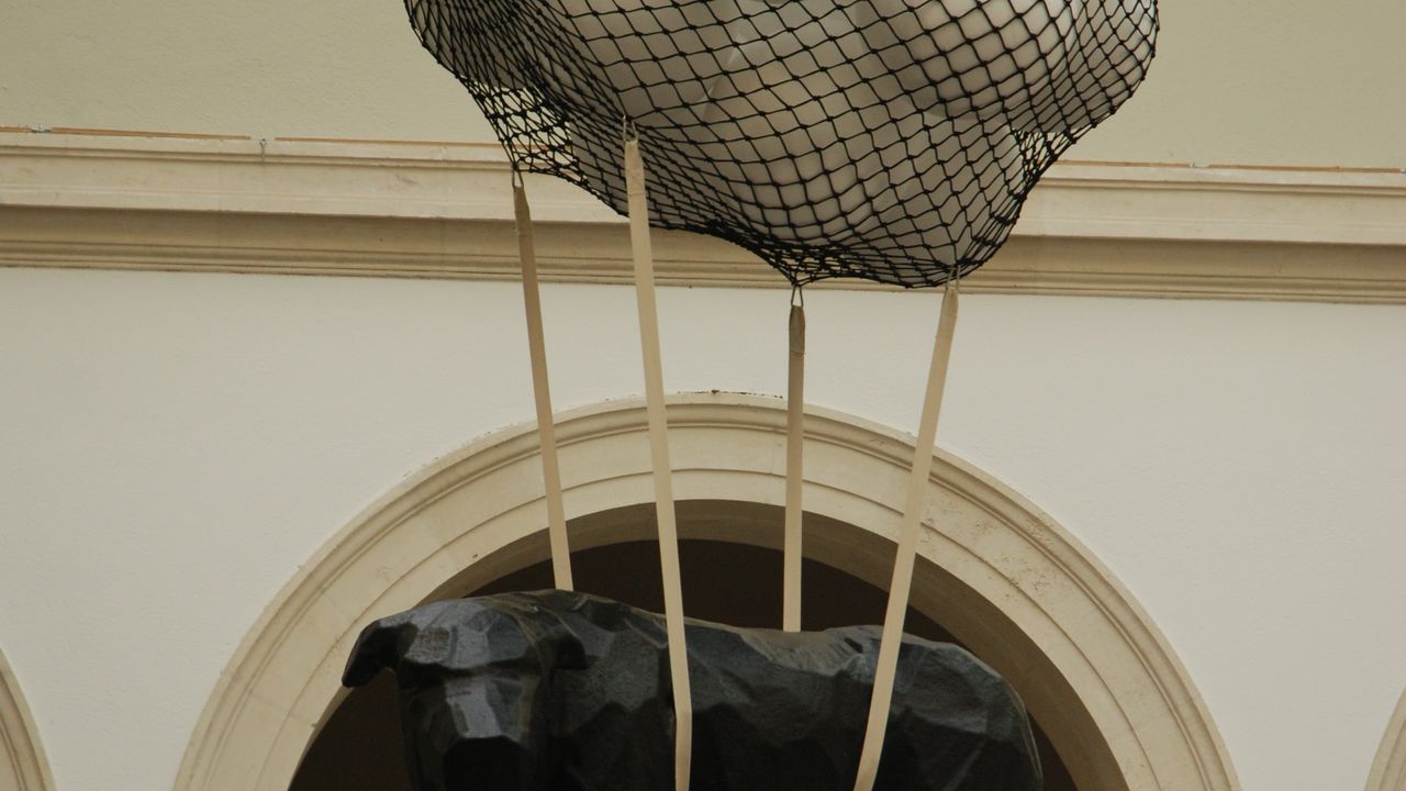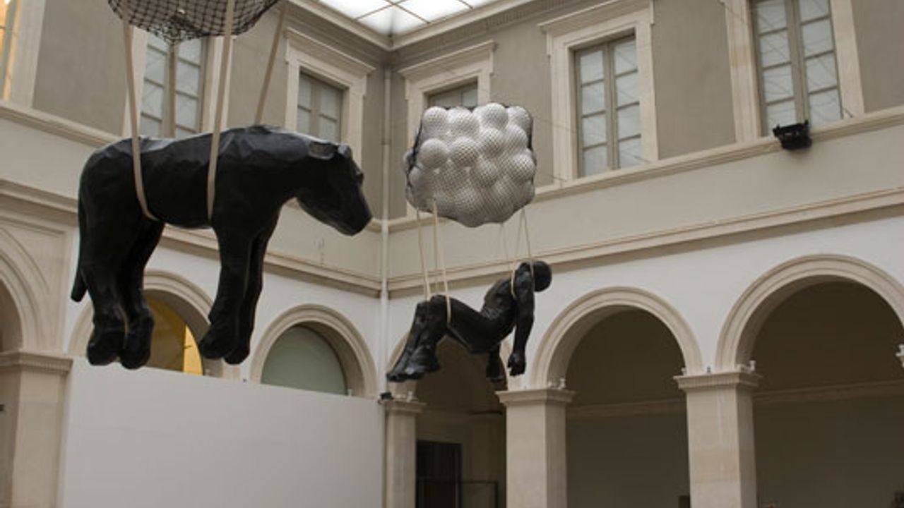 Avec cette confrontation plastique et visuelle – entre sculptures ancrées au sol et œuvres aériennes – l’artiste interroge les notions de migration et de déplacement. Cet état transitoire se trouve renforcé par le double mode de présentation des œuvres, qui induit un va-et-vient entre l’intérieur du musée et les extérieurs du palais Saint-Georges.