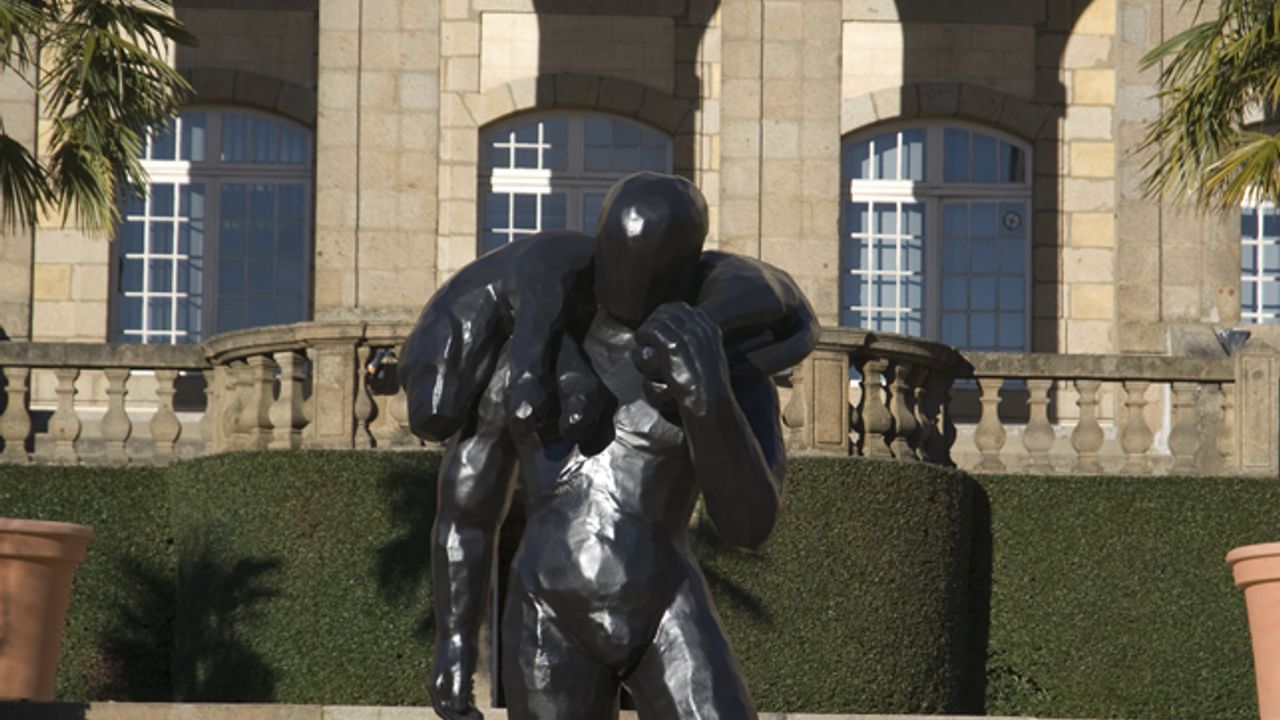 L’exposition En Transit produite par La Criée se déploie sur deux sites : l’espace du Patio du musée des beaux-arts de Rennes et le jardin du palais Saint-Georges. Elle regroupe plusieurs sculptures, dont certaines ont été produites à cette occasion par le centre d’art.