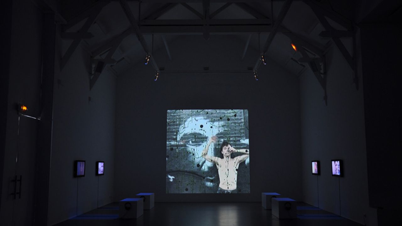Parallèlement, deux films sont projetés de part et d’autre de la salle d’exposition principale. Le premier diffuse des captations de la ville de New York mêlées aux visages des escorts, aux rencontres furtives entre deux corps, aux accessoires de travail. Souvent masquées et tachées de manière aléatoire par des surimpressions, les images du film se dévoilent ou non. Le deuxième film, réalisé dans les toilettes pour hommes d’un lieu public new yorkais, est une véritable chorégraphie de pieds devant des urinoirs.