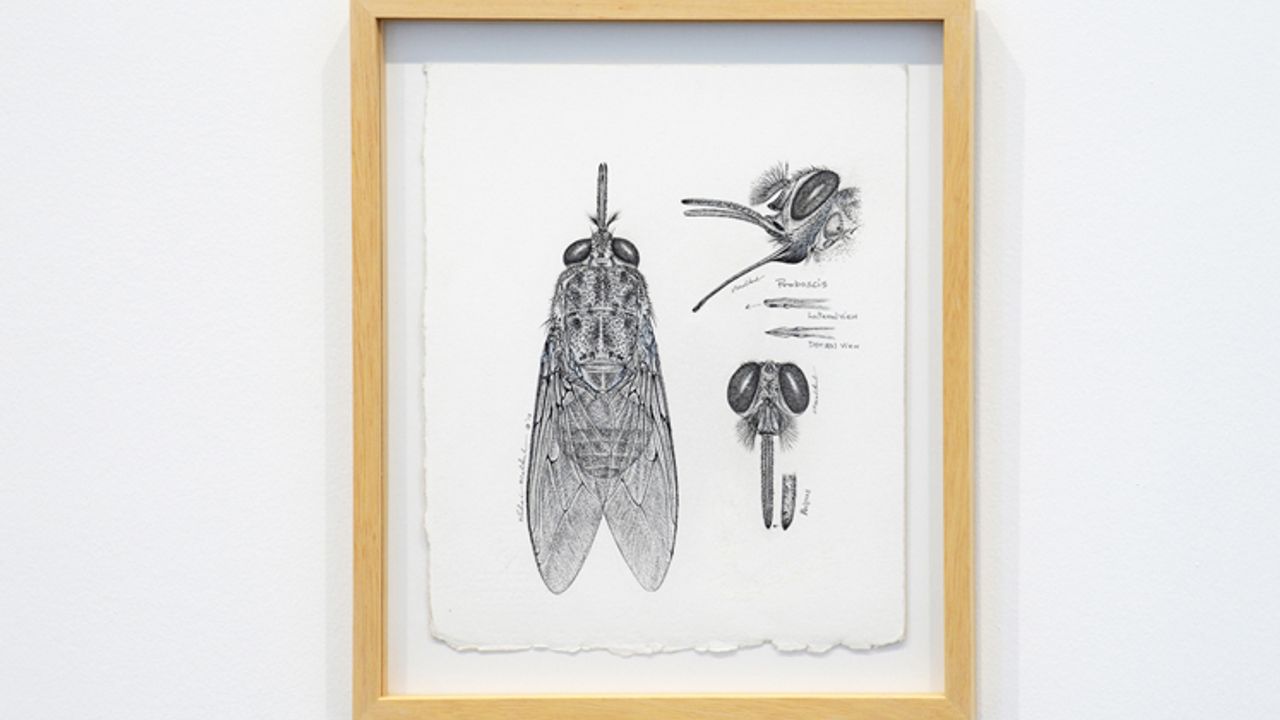 Invité à la Documenta (13) de Kassel, Pratchaya Phinthong a entrepris de réaliser un projet autour de la maladie du sommeil, affection mortelle qui touche notamment les populations d’Afrique sub-saharienne, en déployant un processus de création à la fois sur les continents africain, européen et asiatique. À l’occasion de la Documenta – et après une résidence en Afrique qui lui a permis de se confronter au contexte de l’épidémie – l’artiste a choisi de débuter cette œuvre processuelle par la présentation d’un couple de mouches porteuses de la maladie (une femelle fertile et un mâle stérile), côte à côte sur une plaque de marbre et protégé par une vitrine en verre.
