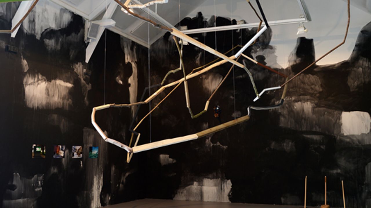 Lutz & Guggisberg sont des conteurs, qui « charment » la réalité. À Rennes, ils imaginent La Forêt, une installation qui dessine à la fois un paysage et une histoire. Cette Forêt est habitée : on y trouve des oiseaux improbables, des convois de fourmis, des créatures marines, tout un bestiaire bienveillant. C’est un espace jubilatoire où l’humour est partout présent ; l’installation mène le visiteur de découvertes en découvertes, depuis un élevage de poussière posé au sol jusqu’à un large mobile qui fait office de canopée. Cependant, une certaine inquiétude est également présente : elle affleure notamment dans les couleurs sombres qui recouvrent les murs.