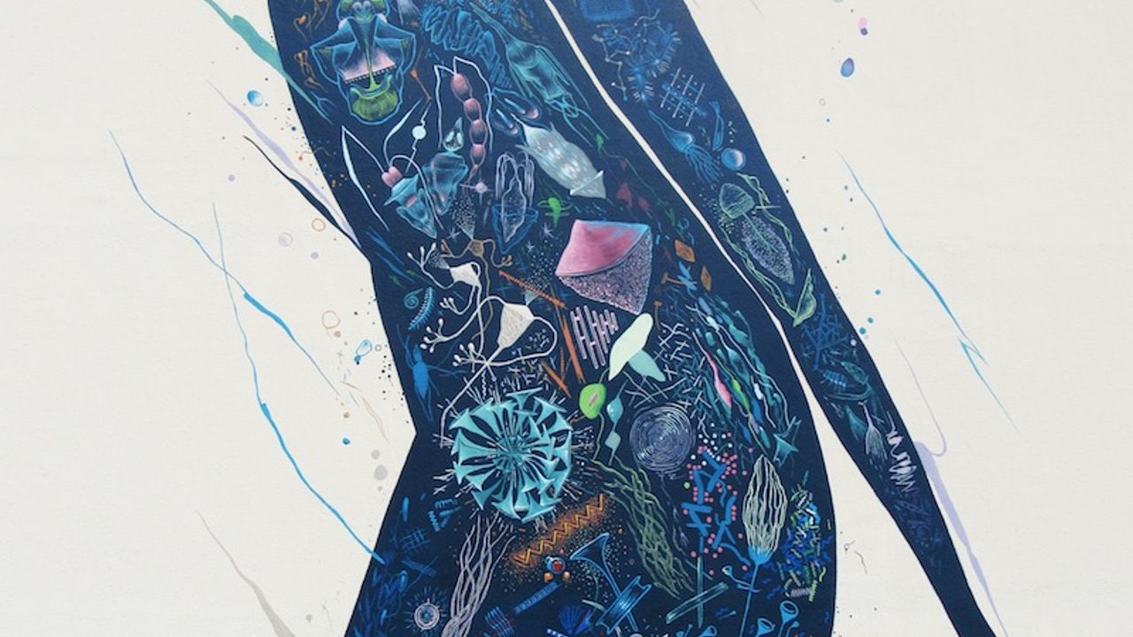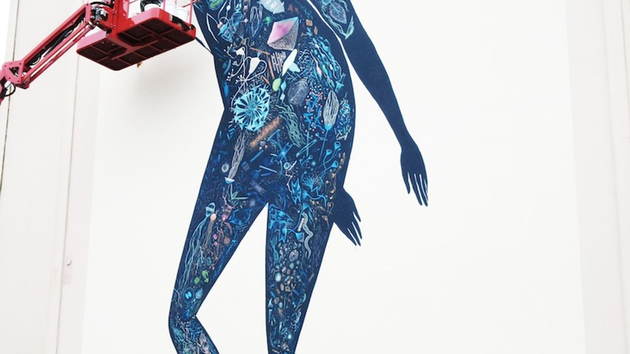 Les composantes de ces nuées seront ensuite rassemblées au sein d’une gigantesque figure murale dessinée par Mioshe, intitulée « Humano Plancton ». Antoine Martinet propose de réunir tous les planctons dessinés avec les élèves au sein d’une peinture de sa composition et de la réaliser sur un mur dans l’espace public à Saint-Malo, lors d’une résidence.