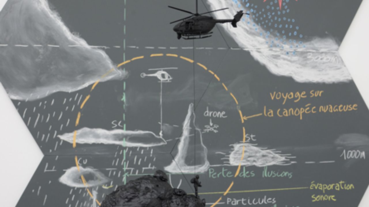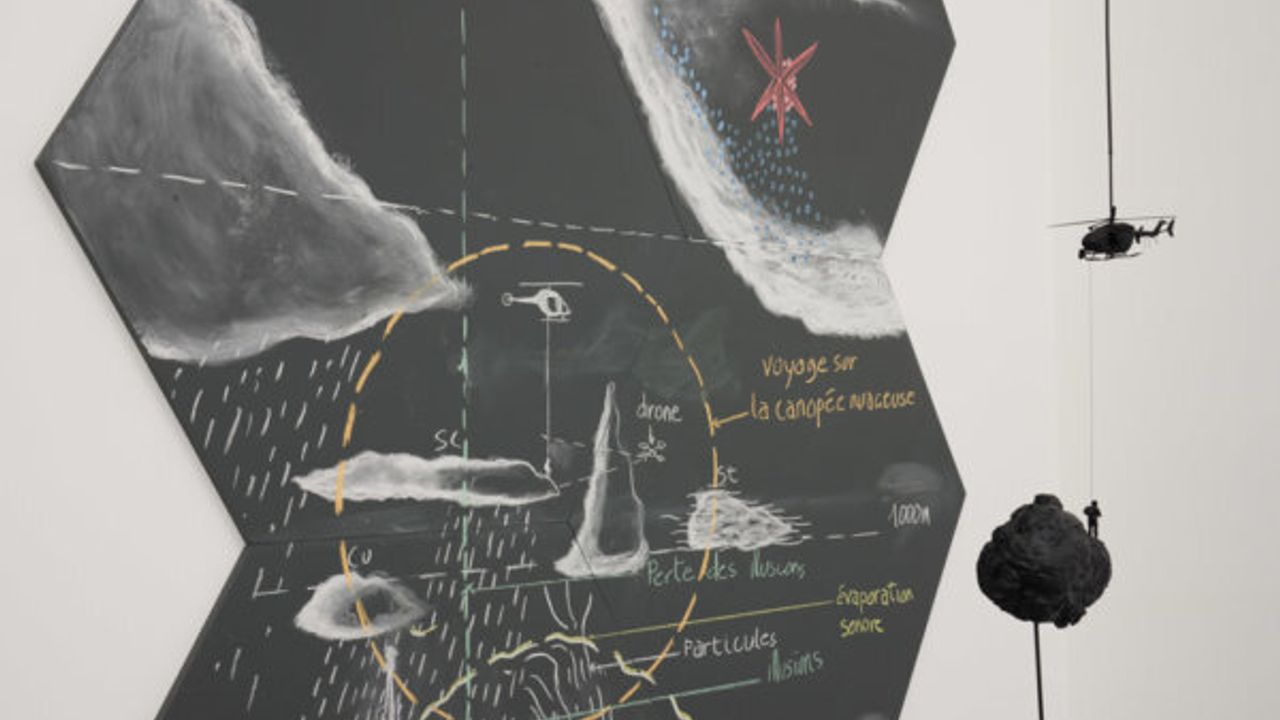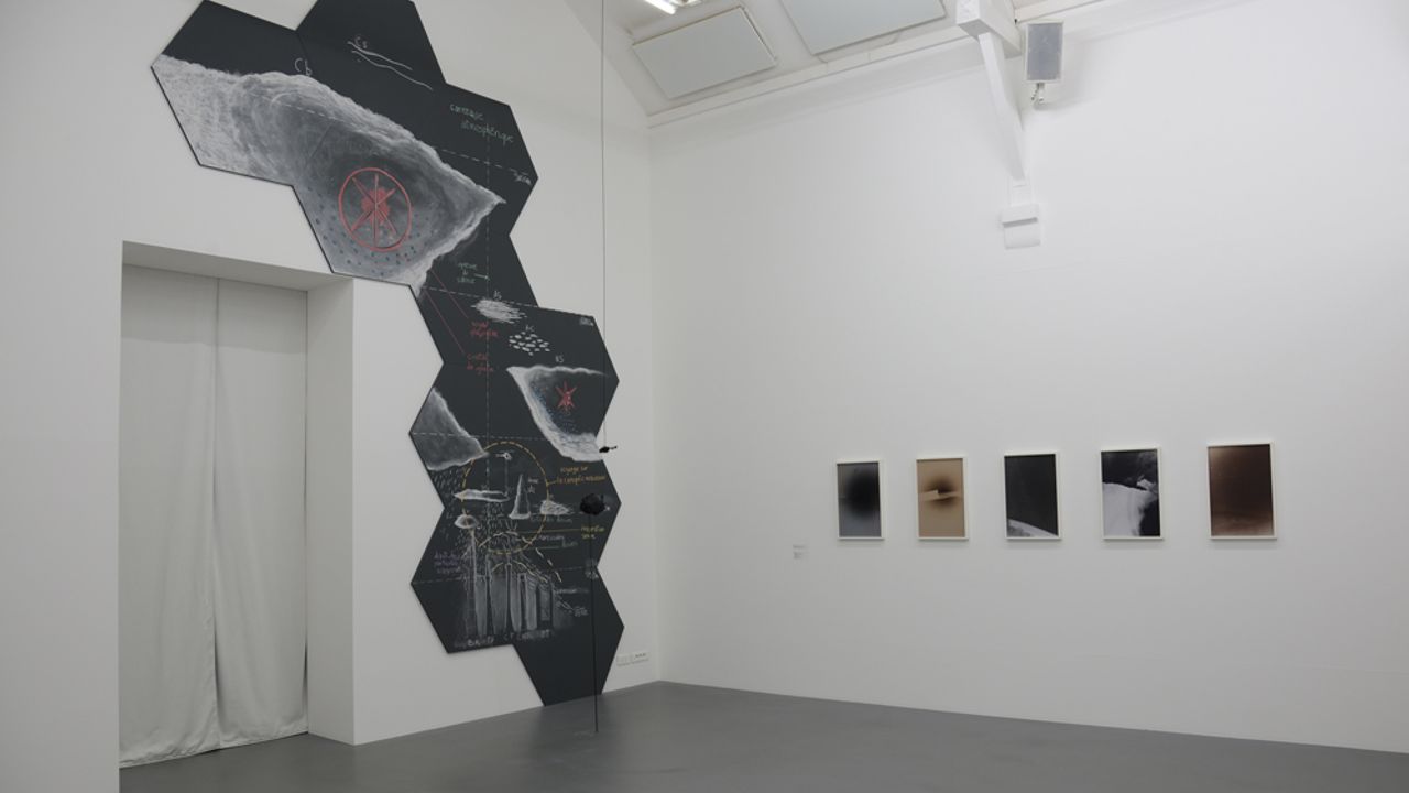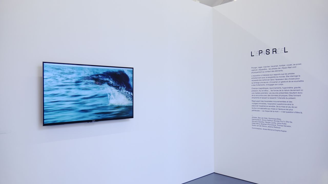 Le second pôle est constitué d’œuvres-traces ou résultant d’un processus. On y trouve les sténopés d’Ellie Ga, qui a résidé sur un navire pris dans les glaces et la nuit polaire. Ceux-ci introduisent dans l’exposition un présent silencieux où les noirs donnent à voir l’épaisseur de l’air autour d’elle. Les empreintes d’Helen Mirra, artiste qui marche, attestent d’une relation cherchée avec le fil des heures. Les toiles maritimes et processuelles de Jessica Warboys éprouvent la picturalité de la mer. Le film de Katinka Bock sonde la densité de l’eau et questionne la disparition de l’objet. La pièce sonore de Dominique Blais, parti au Svalbard pour récolter des fréquences radio naturelles gomme en quelque sorte le souvenir de sa présence, passeur inaudible d’un au-delà en-deçà de notre écoute. L’expérience du réel imprime ici, littéralement autant que métaphoriquement les artistes et les œuvres rapportées.