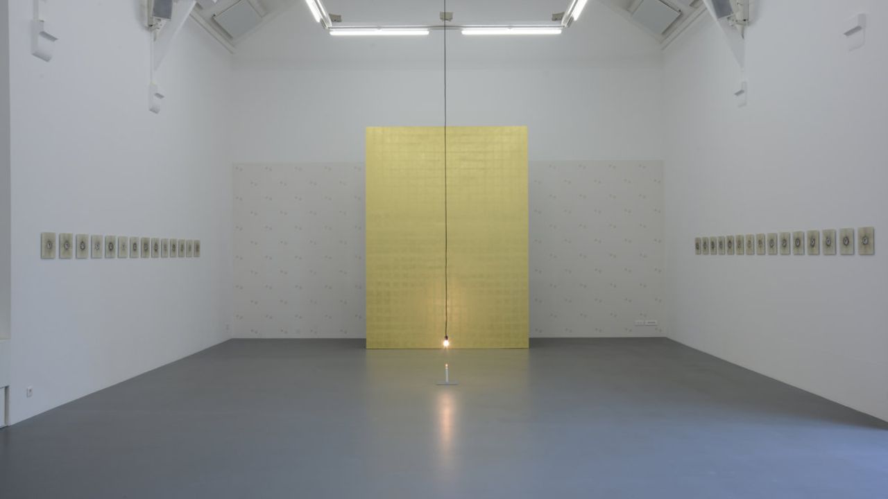 Le titre de l’exposition est emprunté à la pièce éponyme They Watched us for a Very Long Time, 2014 : une soixantaine de plaques en métal subtilisées au système d’éclairage du musée archéologique Pergame de Berlin. Comme celles de bien d’autres musées européens, les collections du Pergame ont été constituées par l’appropriation coloniale d’artefacts anciens, devenant patrimoines culturels nationaux, symboles des identités européennes.