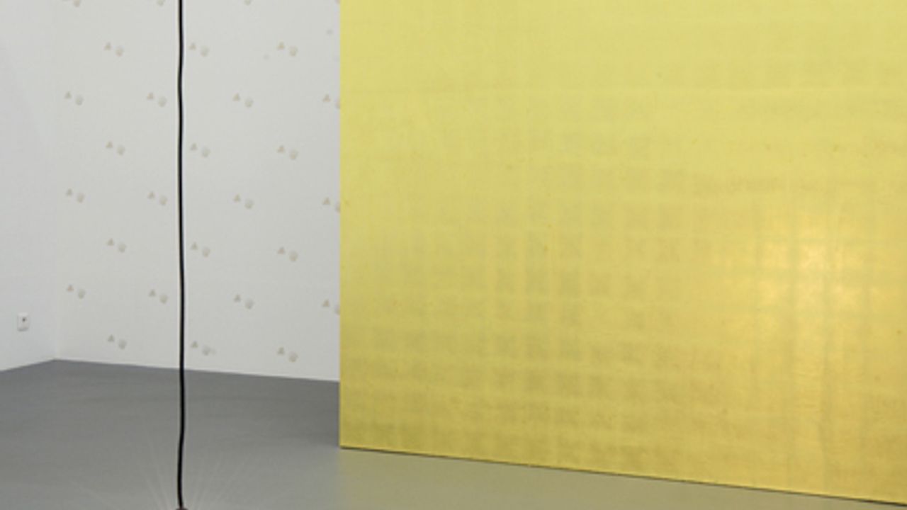 La tapisserie Entre Mundos, 2013 et le mur doré érigé à l’entrée de la seconde salle de La Criée font quant à eux référence à la conquête de l’Amérique du sud par les espagnols et les portugais au XVIe siècle. Beaucoup plus proche dans le temps et brûlante, la projection diapositive Sea Grammar, 2015 évoque silencieusement les migrations méditerranéennes actuelles.