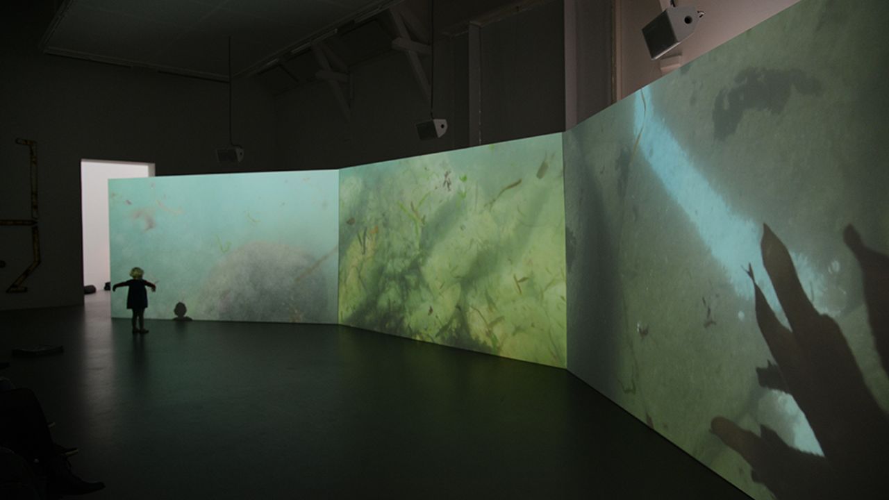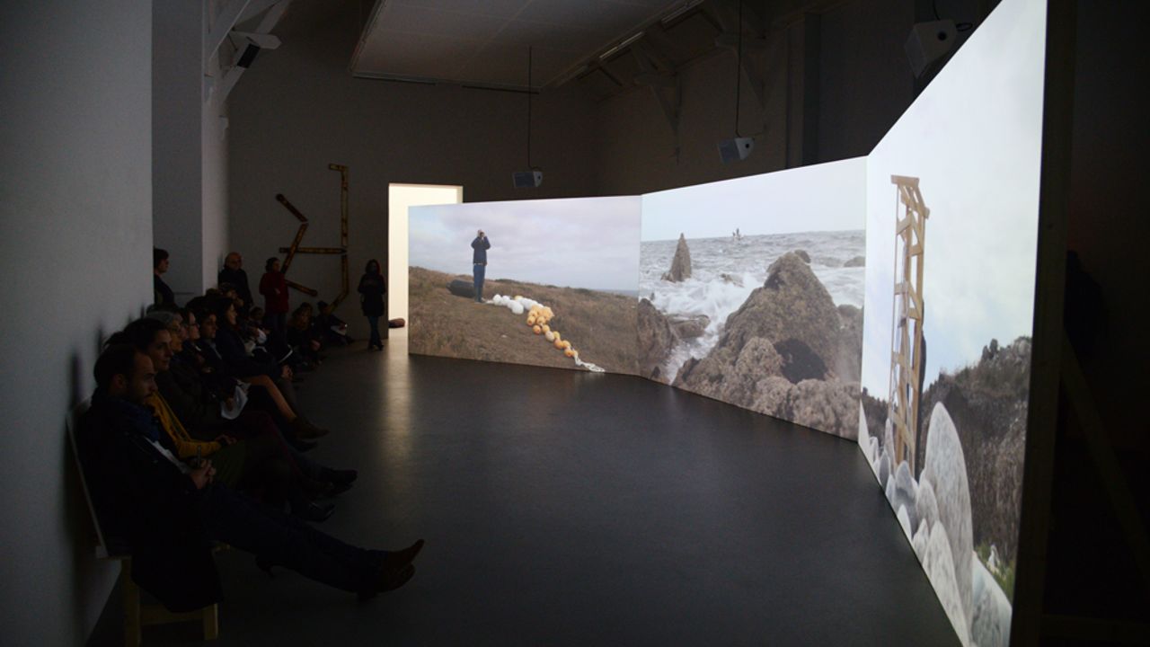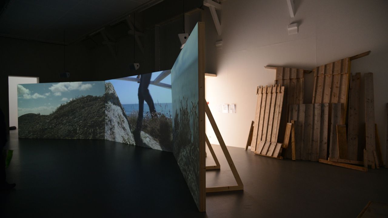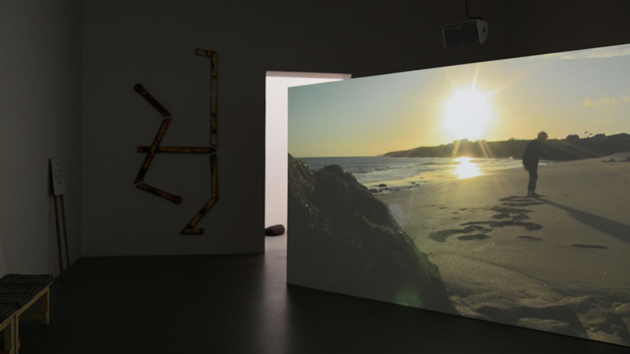 À La Criée, elle présente une installation vidéo, qui condense l’événement et ses multiples temporalités. Celles des artistes, leurs corps, leurs gestes et leurs respirations. Celles des œuvres, performances fugaces, œuvres fragiles vite emportées ou constructions plus résistantes. Mais aussi celles de tout ce qui existait là, autour, sous d’autres repères spatio-temporels que les nôtres : le granit, les crabes, les lichens, la houle, etc., toute une multitude de veilleurs qui chargeaient l’endroit de leurs échelles respectives.