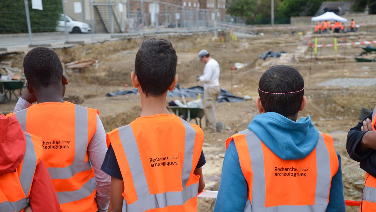 Droits réservés : visite du chantier de fouilles archéologiques avec les élèves de l’école Torigné, Hôtel Dieu, Rennes, 2017
