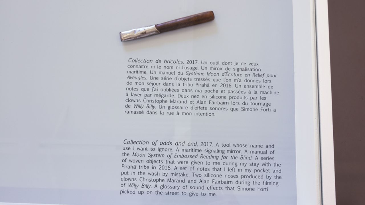 Je pourrai vous décrire les œuvres en cours. Je pourrai vous dire qu’il y aura une vidéo, des images, des objets, mais aussi des marques et des traces au mur, au sol, aux fenêtres ou aux portes. Et que je montrerai aussi des collections, des collections de choses que je croise et que je récolte, et qui prennent domicile dans mon atelier, et servent de jalons à mes pensées.