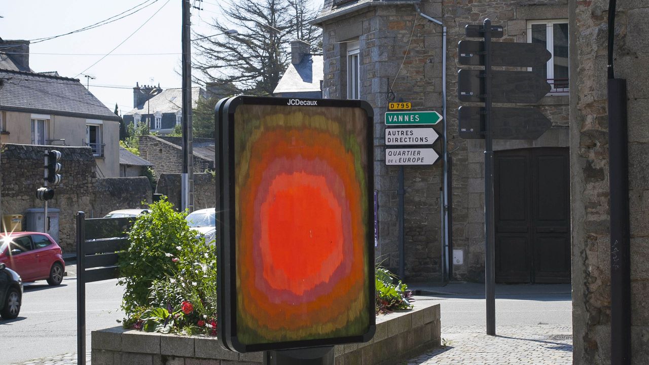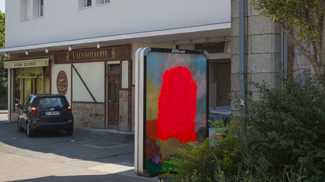 Flora Moscovici, Certaines peintures se promènent, peinture pour les supports publicitaires, Dinan, 2018 production : Les Ateliers du Plessix-Madeuc, Dinan et La Criée centre d’art contemporain, Rennes