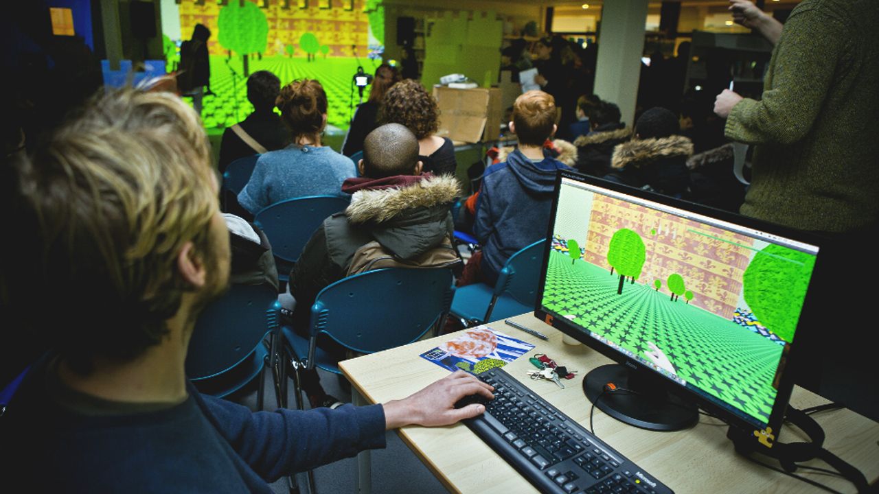 Dans le prolongement de la résidence d’Éric Giraudet de Boudemange à l’ESPE de Rennes, La Criée a invité l’artiste à développer ses recherches sous la forme d’une création numérique, en collaboration avec le game designer Tomavatars. Ensemble ils ont imaginé le premier volet d’un jeu vidéo inspiré de l’univers de l’artiste. Intitulé Yvain !, ce jeu d’aventure est une libre interprétation du roman courtois Yvain, le chevalier au lion de Chrétien de Troyes. On y découvre des références à la littérature médiévale, la figure de l’homme sauvage et de l’amoureux désabusé, mêlées à différents langages de la culture populaire (graffitis, films, séries TV). Le jeu a été présenté sous forme de performances avec Éric Giraudet et Tomavatars en janvier 2019 à la Fondation Ricard (Paris) et en février 2019 à La Criée centre d’art contemporain (Rennes). Il est en libre accès dans l’espace des Sources de La Criée et en téléchargement gratuit sur Mac et PC