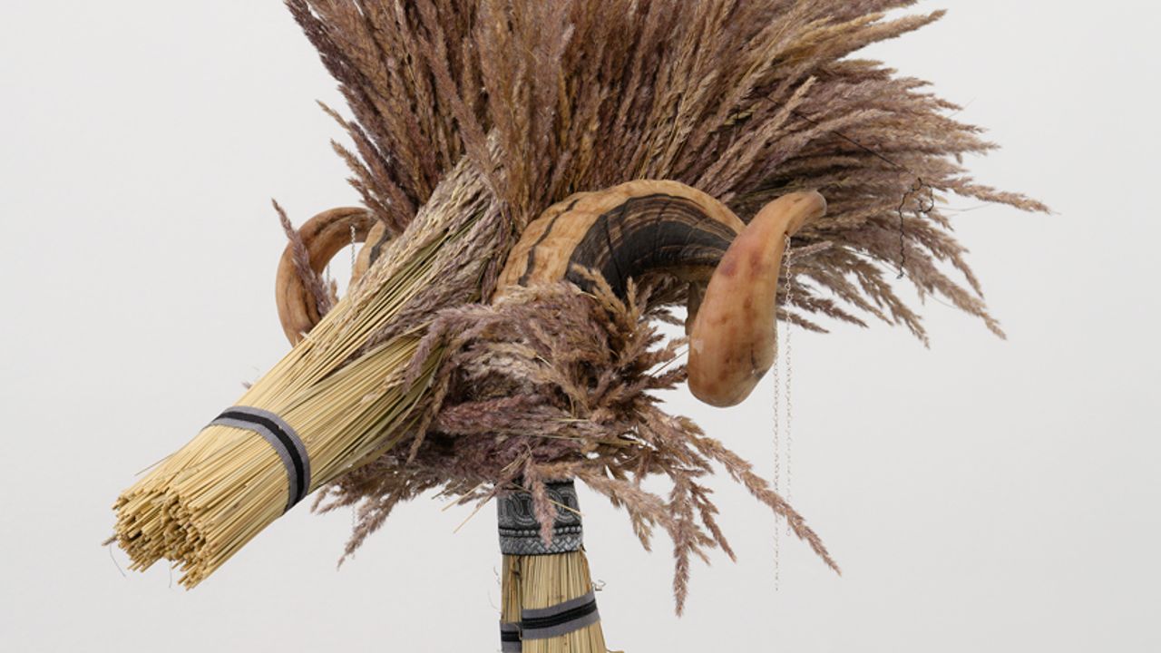Pour fabriquer ses sculptures, Myrup glane des objets naturels autant que des objets manufacturés, issus des rebuts de la société de consommation, qu’il assemble ensuite avec une extravagante virtuosité.